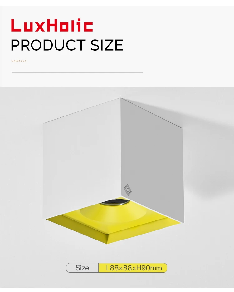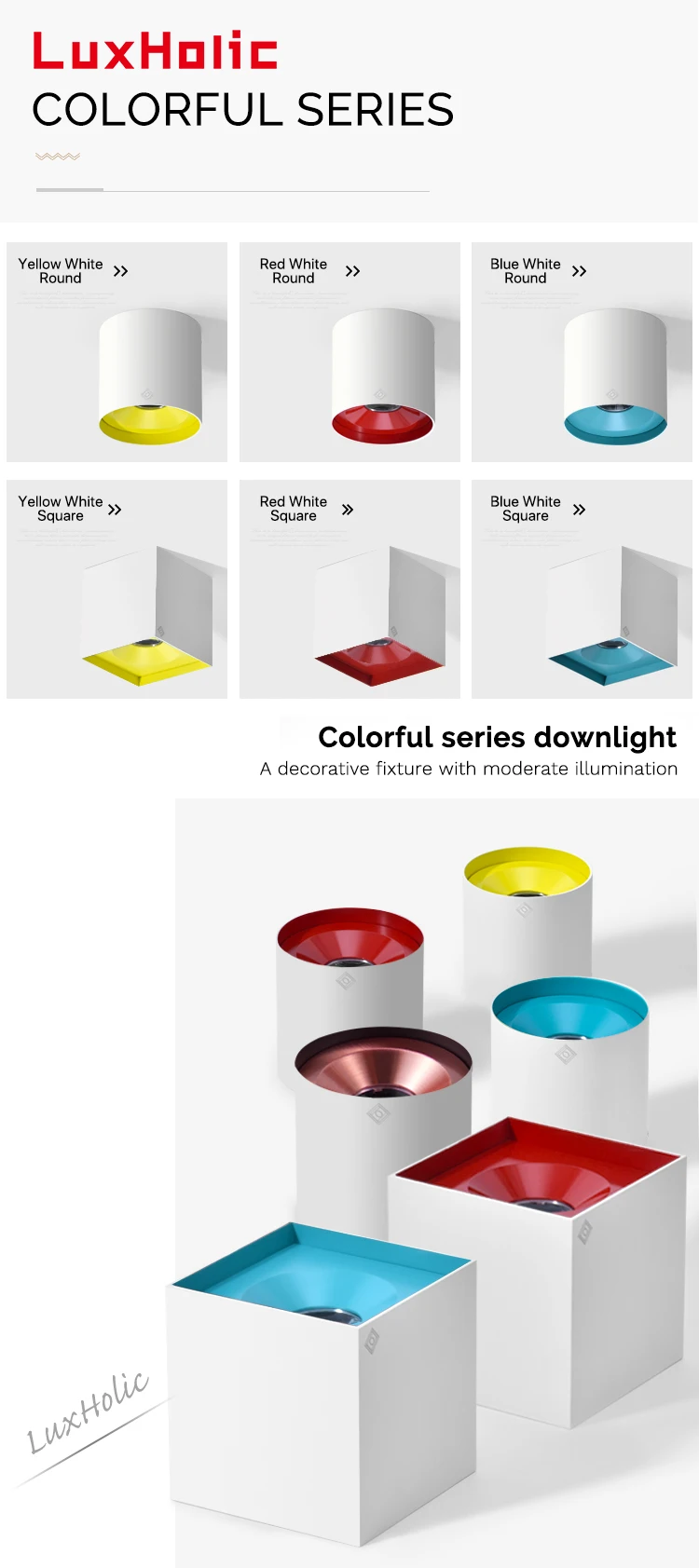 LuxHolic red white aluminium housing 6W surface mounted square led ceiling lighting warm white integrated COB led downlight