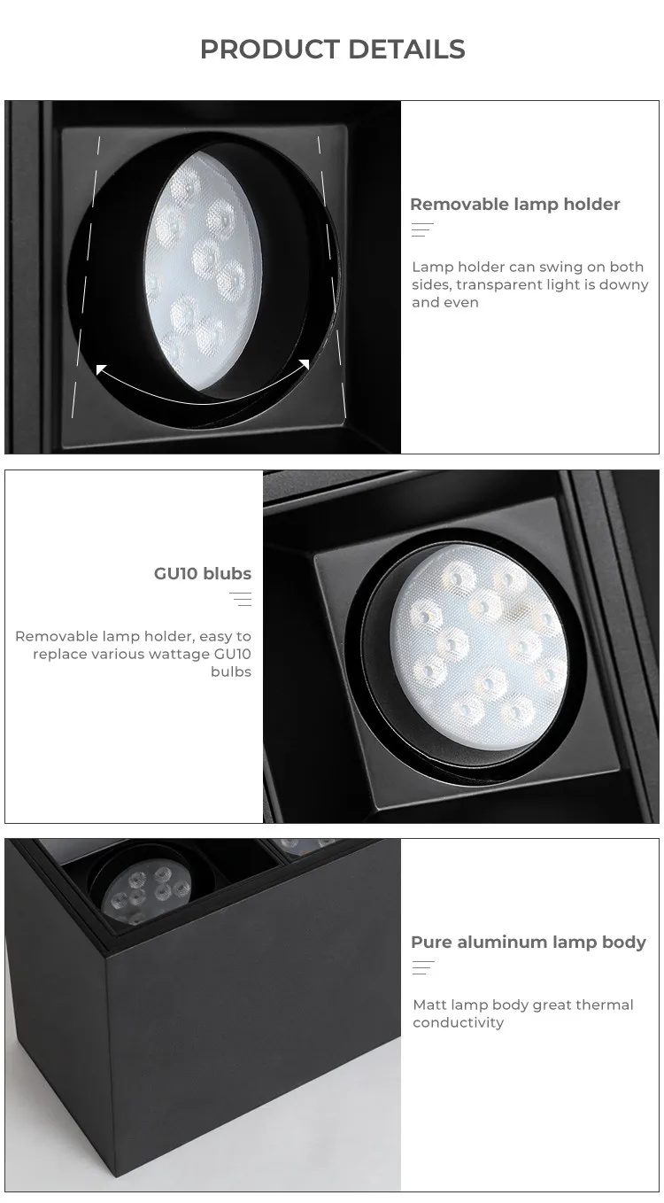 LuxHolic Double Head Surface Mounted Square Lighting Led Ceiling Corridor Hallway Adjustable GU10 COB Led Downlights