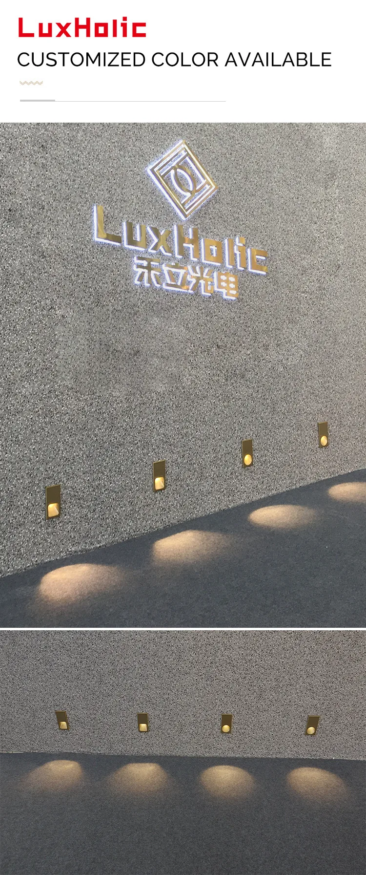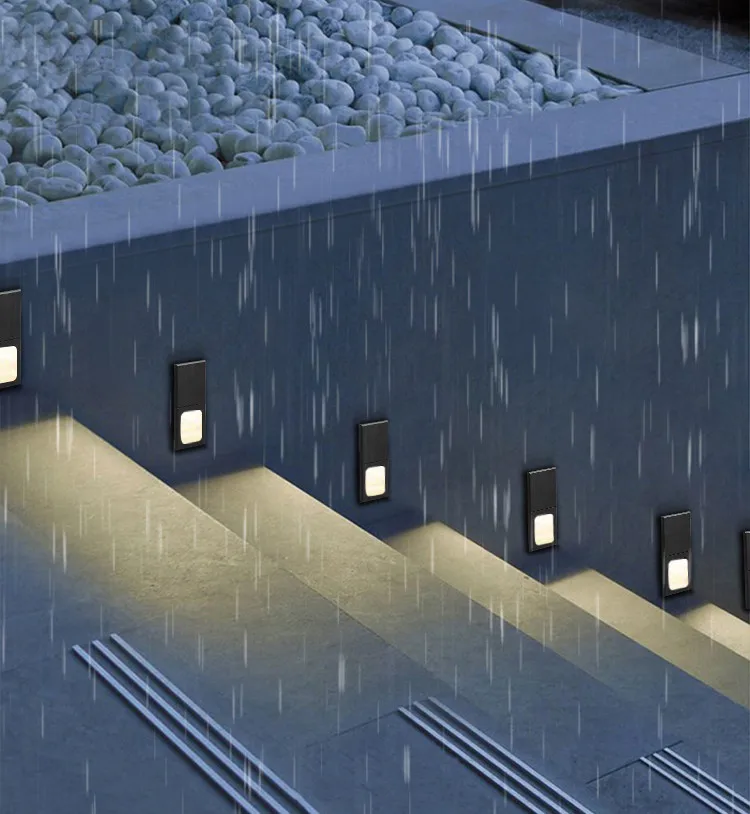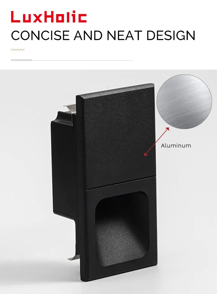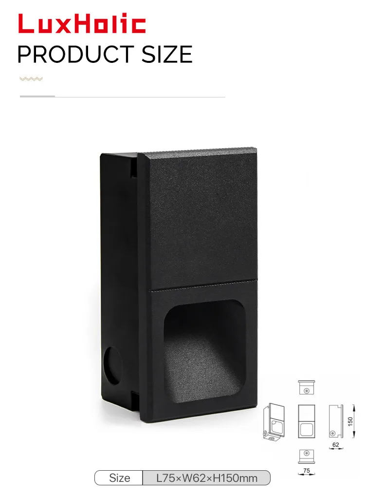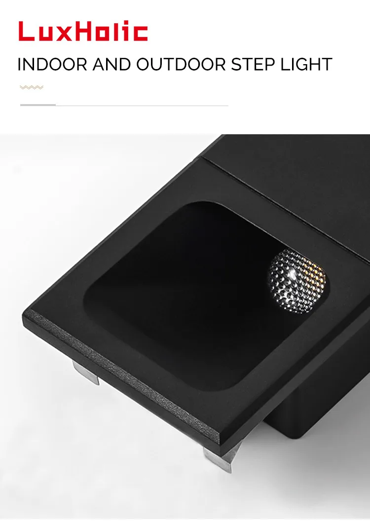 LuxHolic outdoor aluminum led 3W stair light square black garden waterproof recessed step wall light for hotel residential