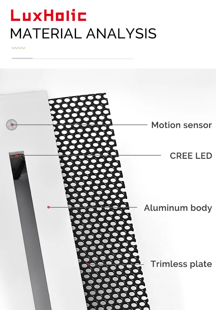 LuxHolic Motion Sensor Aluminium Stair Foot Light Corner Hallway 3W Staircase Recessed Led Step Lights