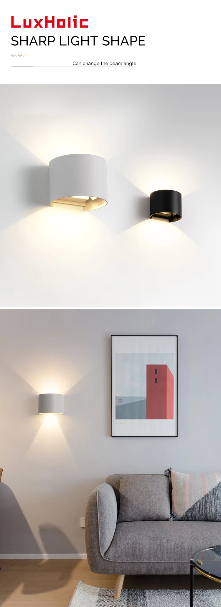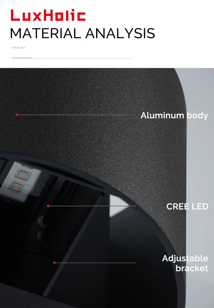 Home Lighting, Artwork & Interior Decoration Accessories Indoor Customized Lighting Interior Wall Lights LuxHolic LuxHoIic waterproof IP65 6W black adjustable surface mounted outdoor led lighting up and down outdoor lighting wall light lamp