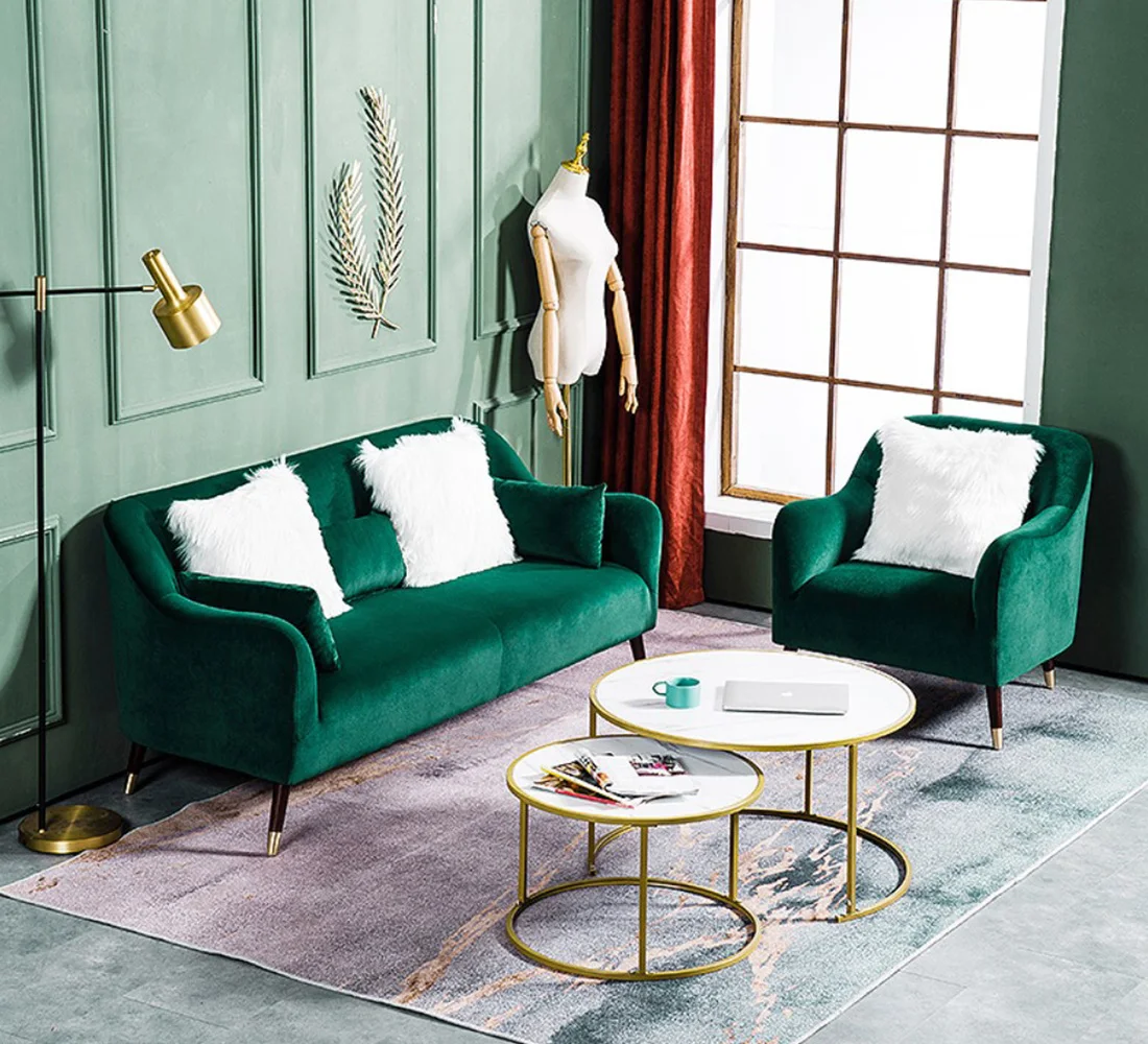 Green Color Modern Design Living Room Designs Flannelette Fabric Luxury Sofas