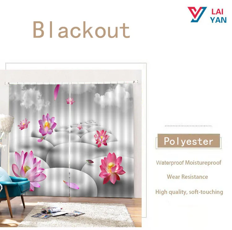 Home Doors, Windows ,Curtains & Signage Curtains Window Curtains Hefei Laiyan Electronic Commerce Co., Ltd Custom European Design 100% Polyester Blackout Fabric Digital Printed Luxury 3d PVC Living Room Ready Made Window Curtain