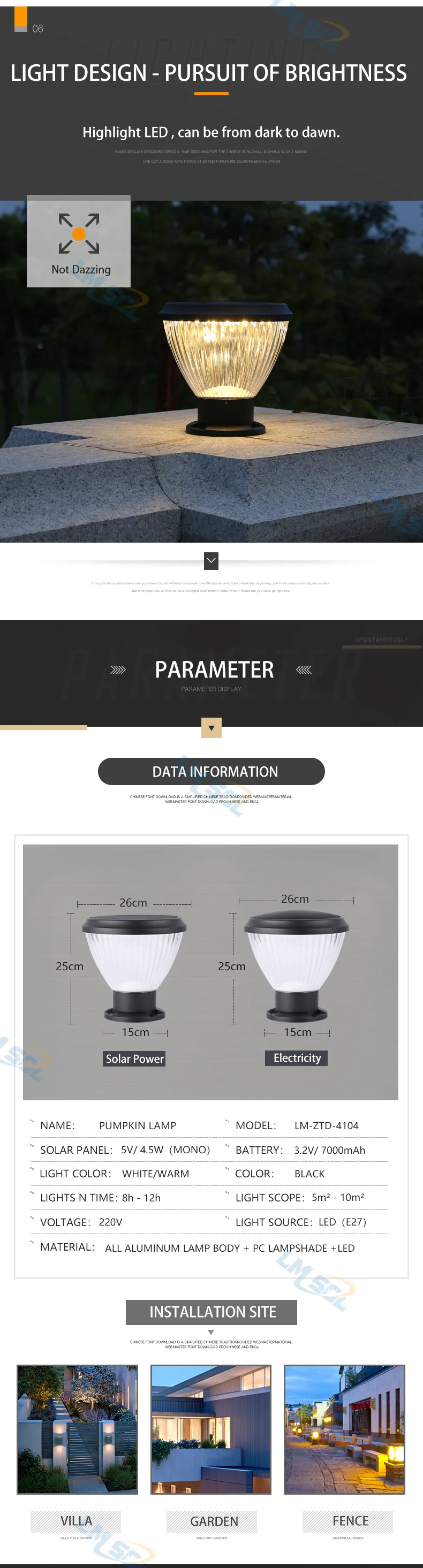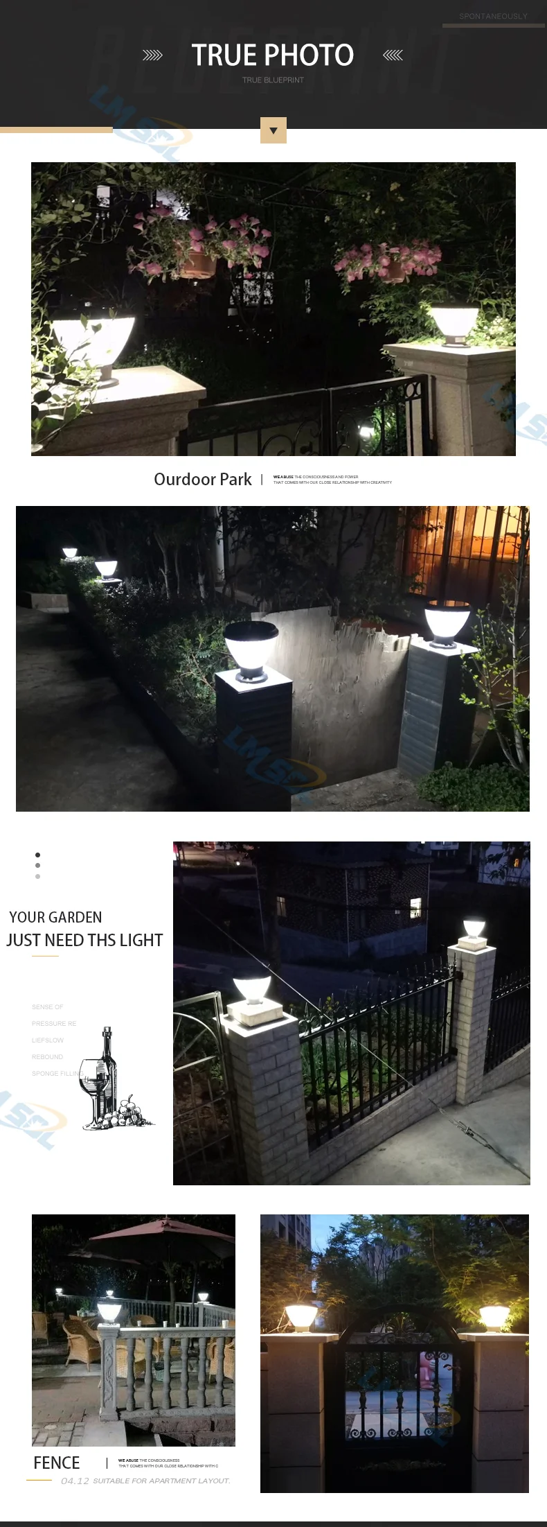 Home Lighting, Artwork & Interior Decoration Accessories Outdoor Lighting Garden Street Lights Dongguan Lmsol New Energy Technology Co., Ltd. LMSOL Solar light Factory price 12W Garden Fence Solar Pillar light