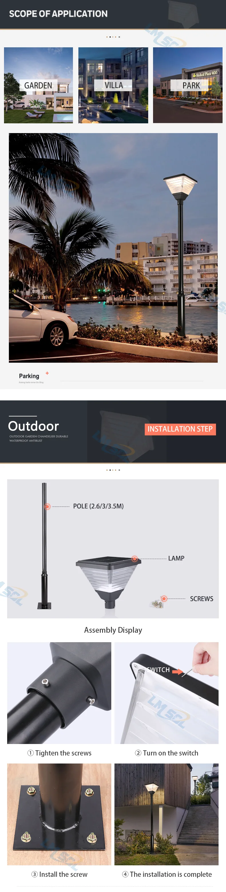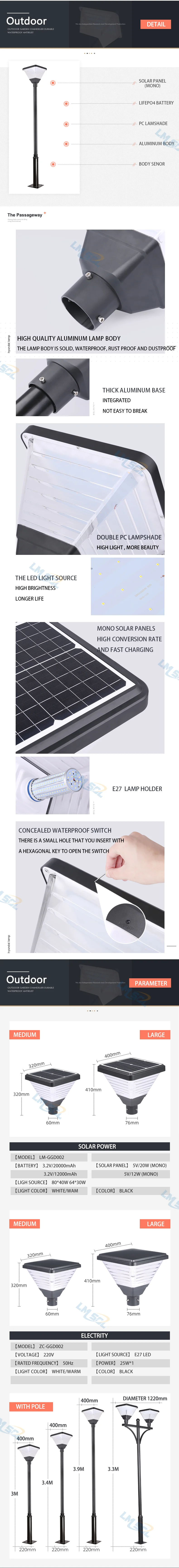 LMsol Solar light Factory price Outdoor Led Garden Solar High Pole Light