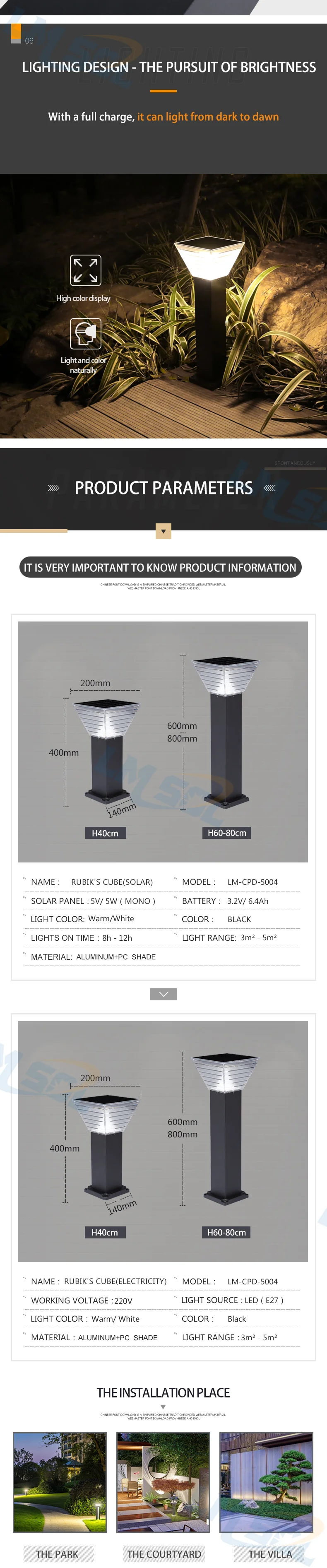 LMSOL Competitive Price Height 40cm 60cm 80cm Solar lamp MONO 5w Waterproof IP65 Garden lawn Solar light