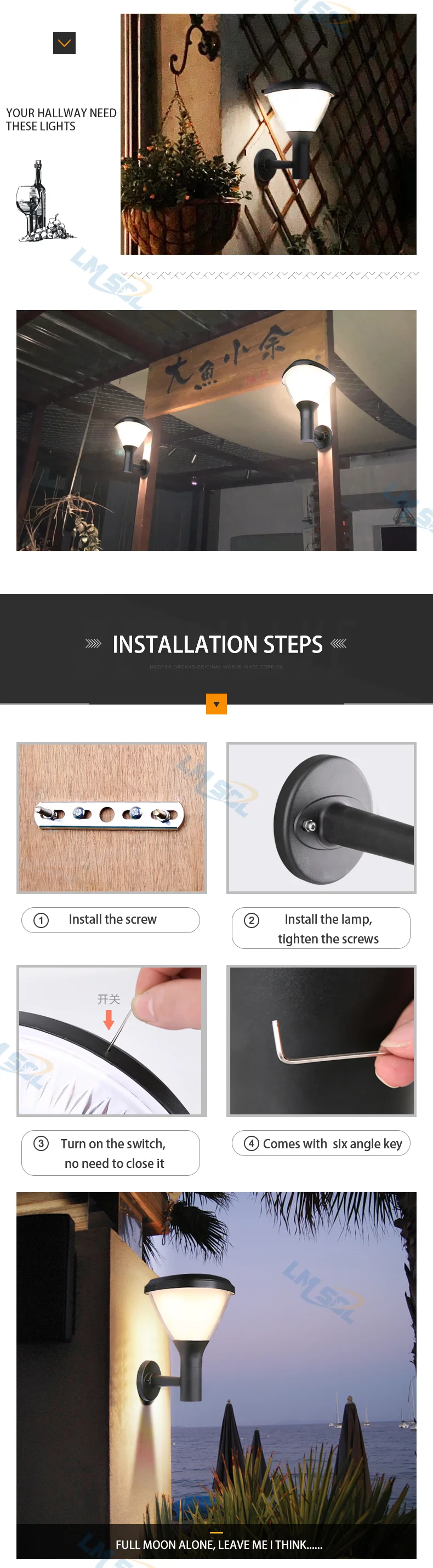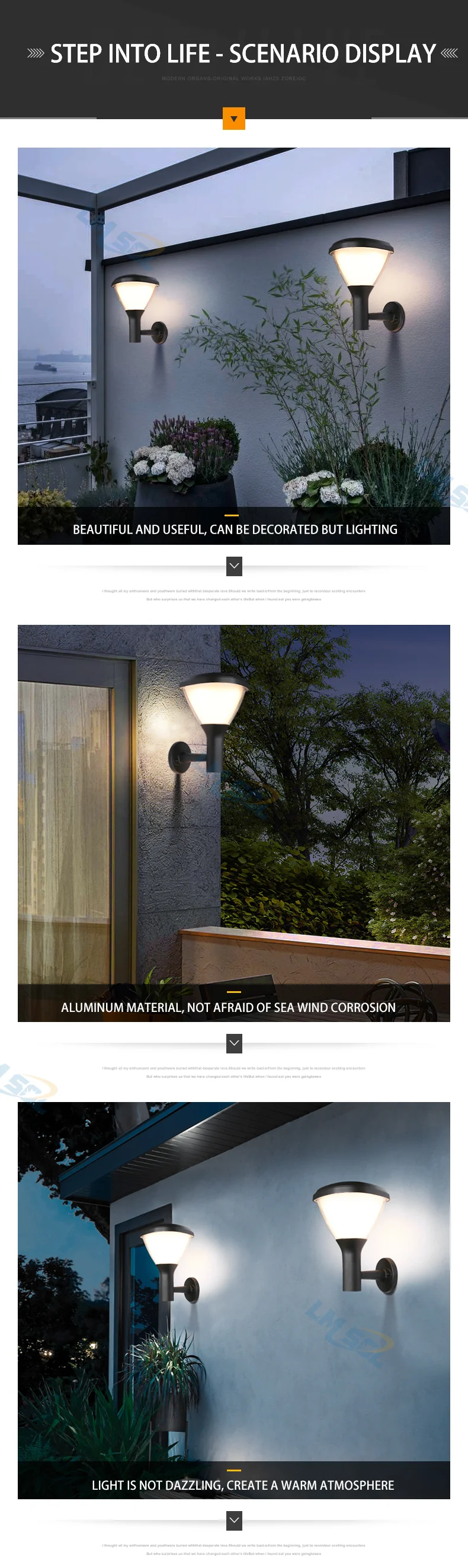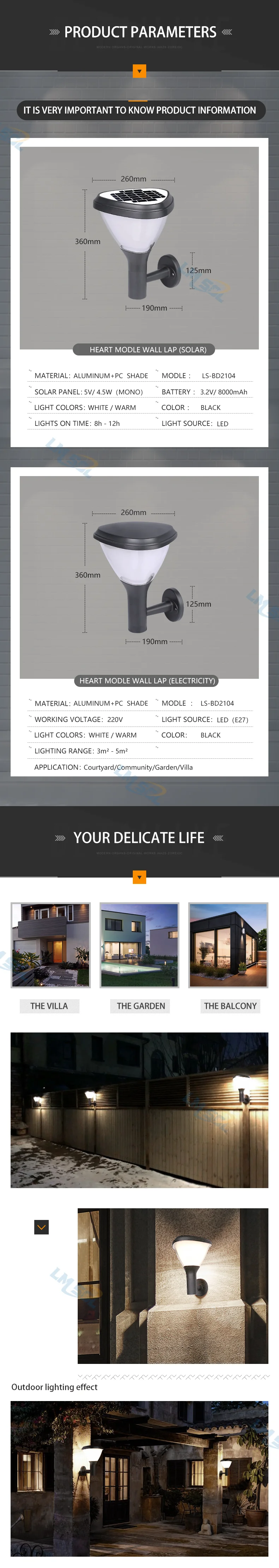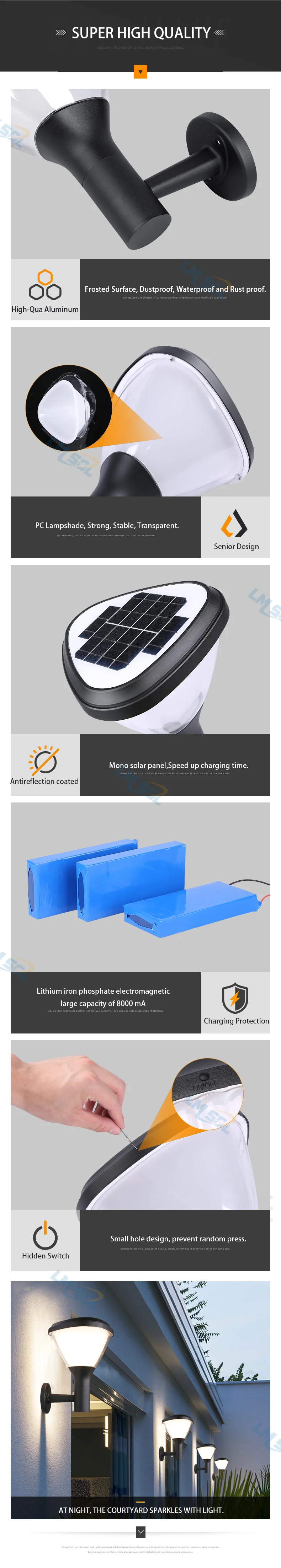Home Lighting, Artwork & Interior Decoration Accessories Outdoor Lighting Outdoor Wall Lights Dongguan Lmsol New Energy Technology Co., Ltd. Waterproof IP65 Garden Park Solar Garden wall light