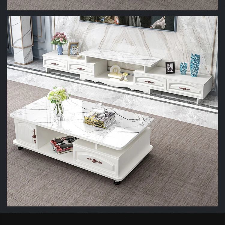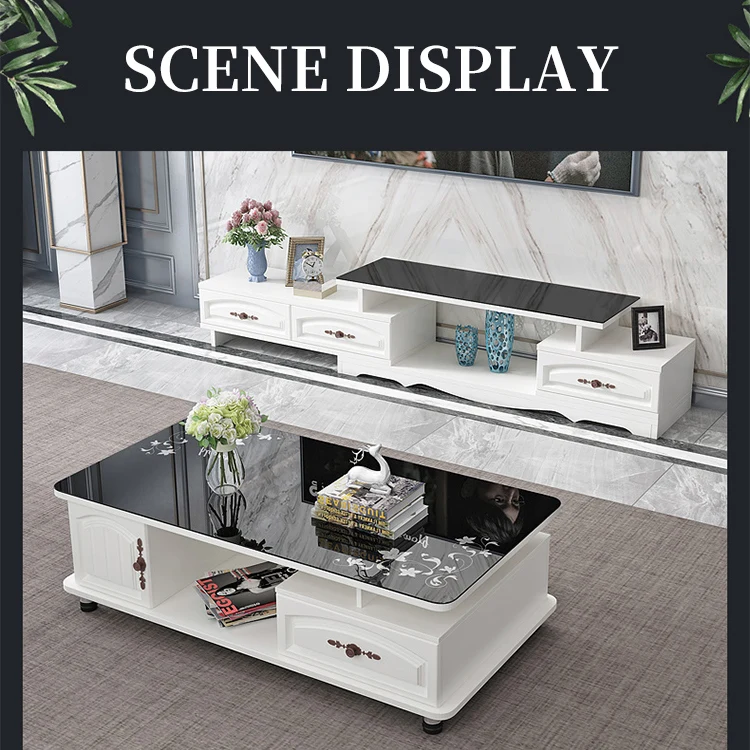 Modern Living Room Tea Table Round Corner Glass TV Stand TV Cabinet Combination Furniture Manufacturer