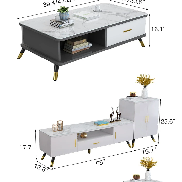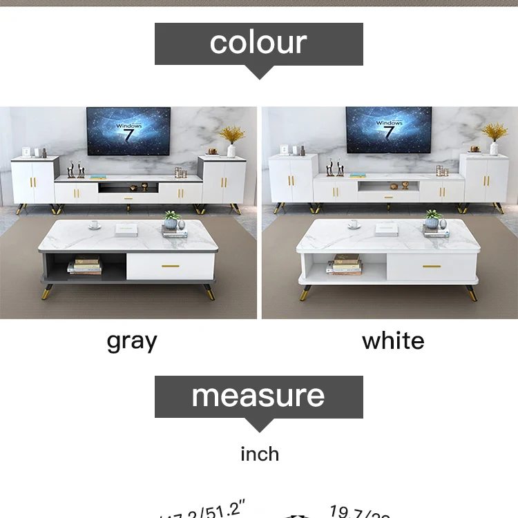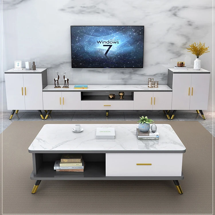 Home Movable Housing Furniture & Household Appliances Living Room Furniture TV Stand Xuzhou Yuanmuge Home Technology Co., Ltd. Modern tea table luxury TV cabinet combination set living room table rounded corner glass furniture manufacturer