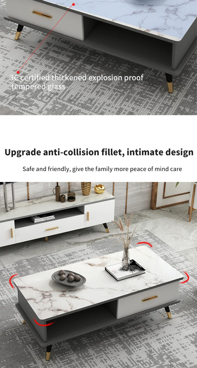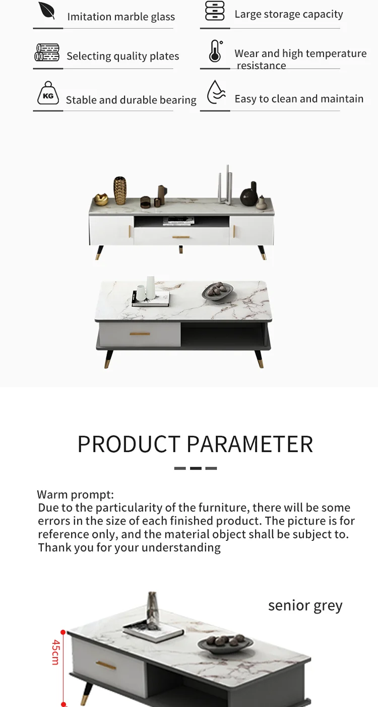 Home Movable Housing Furniture & Household Appliances Living Room Furniture TV Stand Xuzhou Yuanmuge Home Technology Co., Ltd. custom made White Color Big size Coffee table TV Cabinet TV Stand Furniture Set