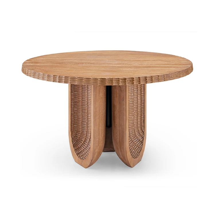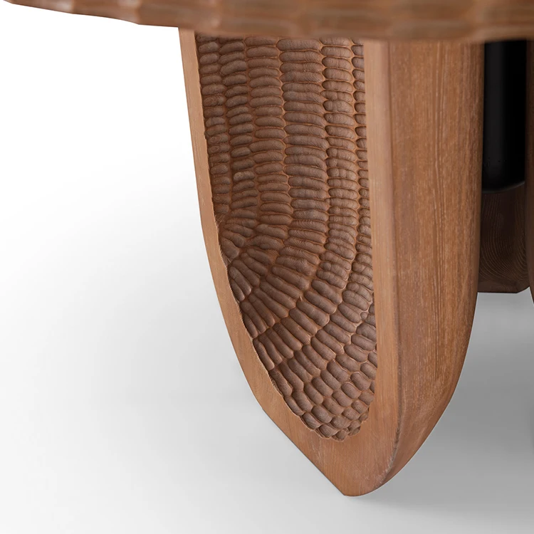 MUMU Factory Solid Wood Top and Natural Forged Pattern Base Modern Smart White Oak Wood Round Coffee Table