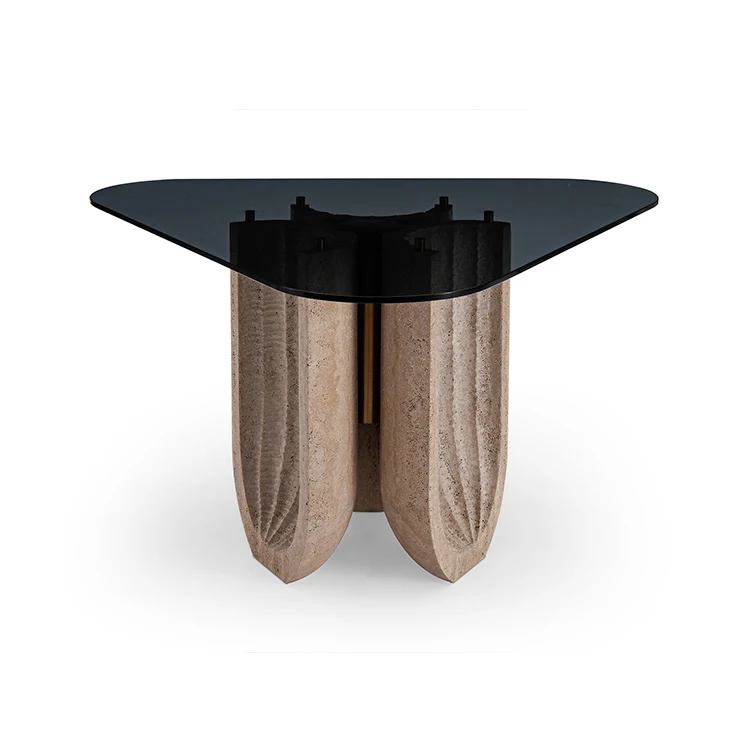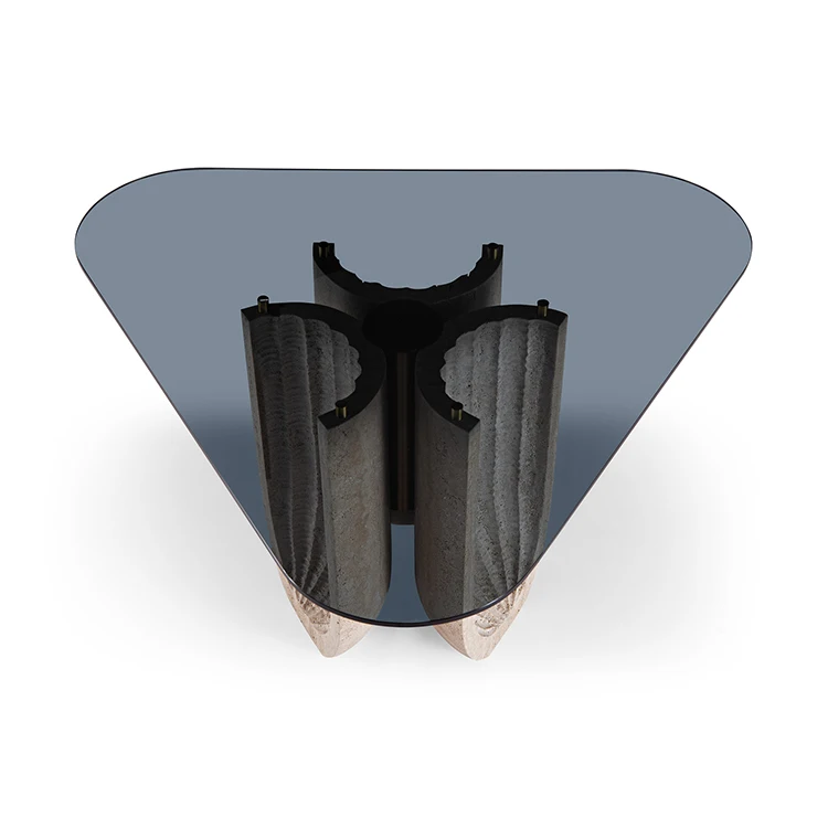 MUMU Furniture Nordic Grey Glass Desktop Equilateral Triangle Solid Wood Frame Center Coffee Table