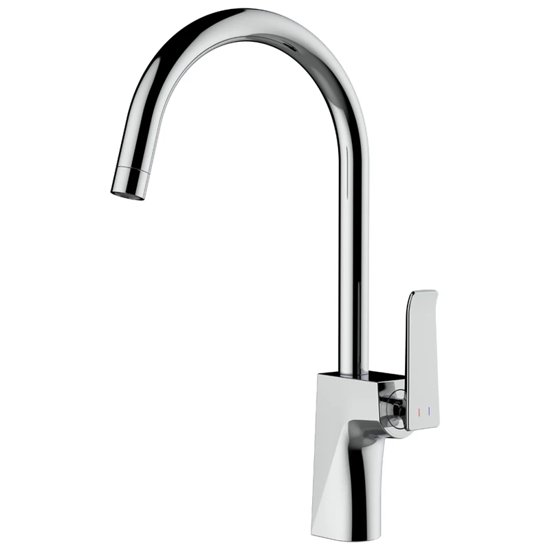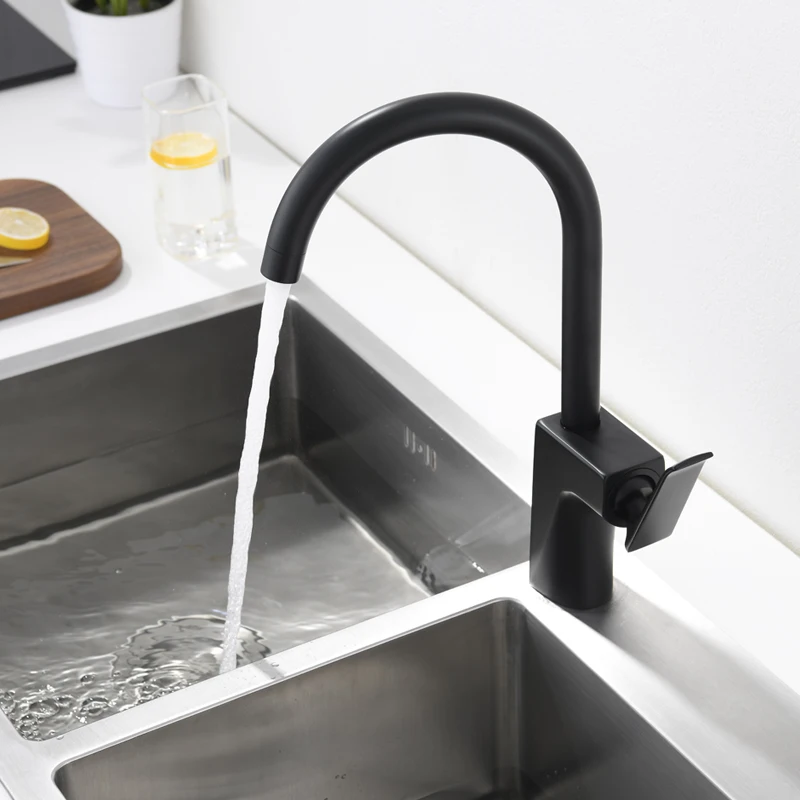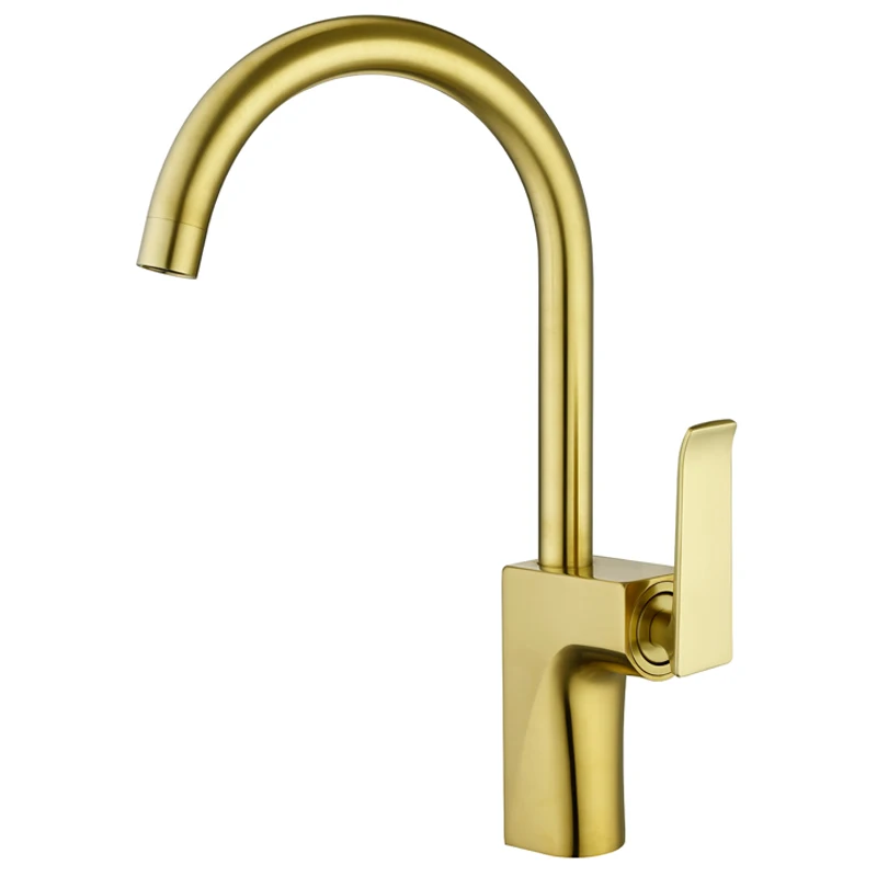 Brushed Gold Gooseneck Deck Mounted Hot Cold Water Copper Body Zinc Handle Kitchen Brass Sink Faucet