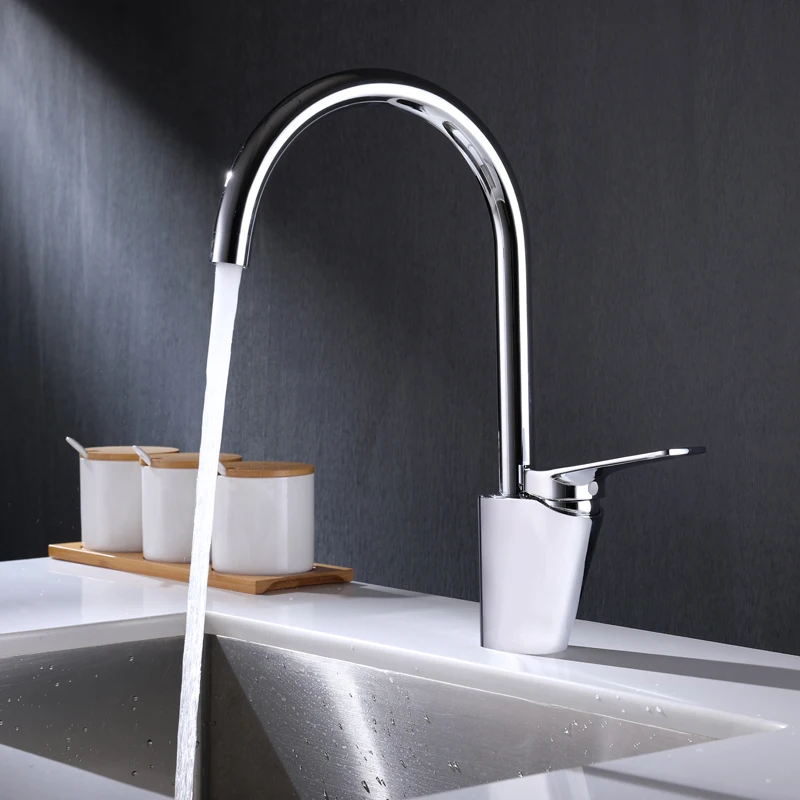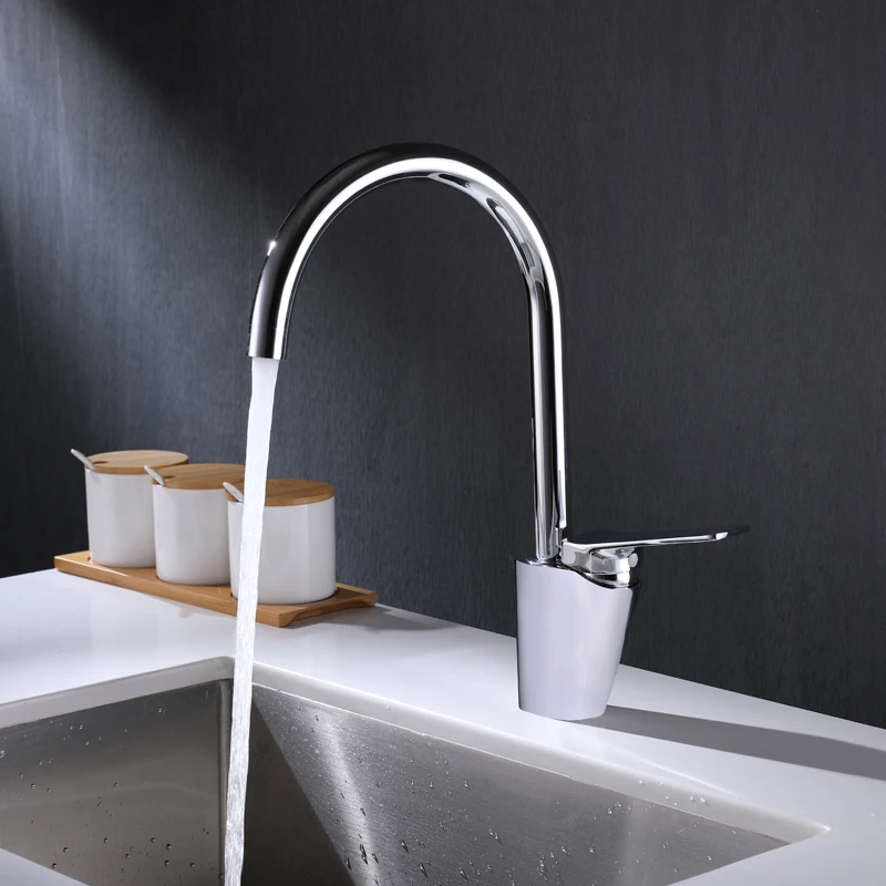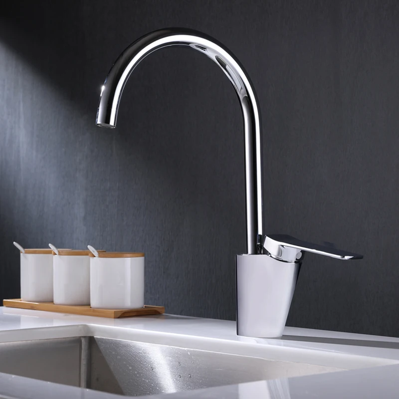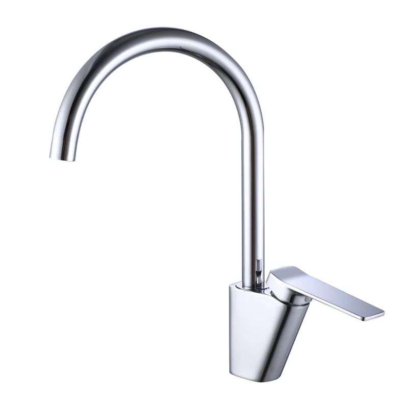 Chrome Plating Hot Cold Water Casting Brass Body Zinc Handle Gooseneck Brass Sink Faucet For Kitchen