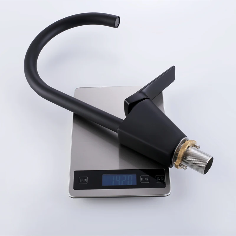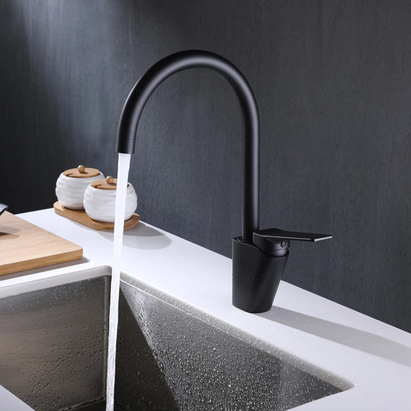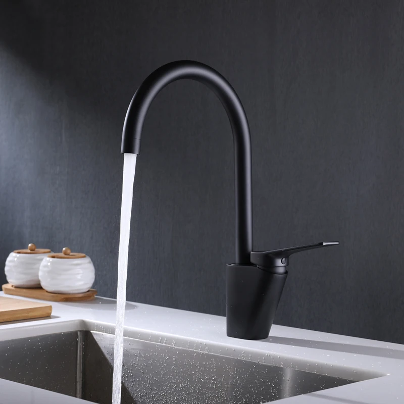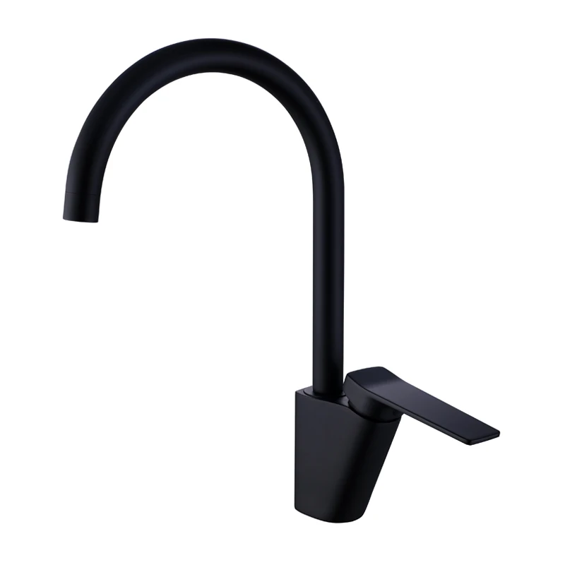 Galvanic Plating Hot Cold Water Casting Body Zinc Handle Gooseneck Matt Black Brass Sink Faucet For Kitchen