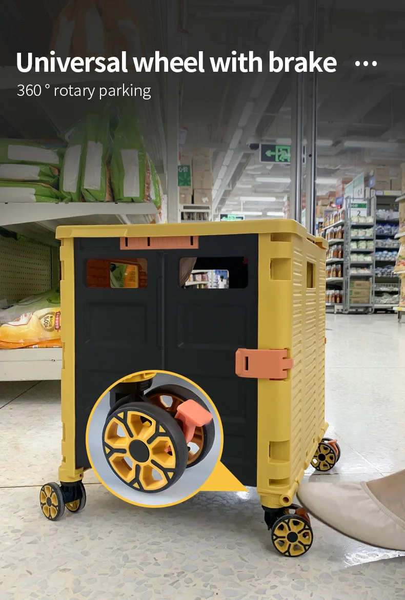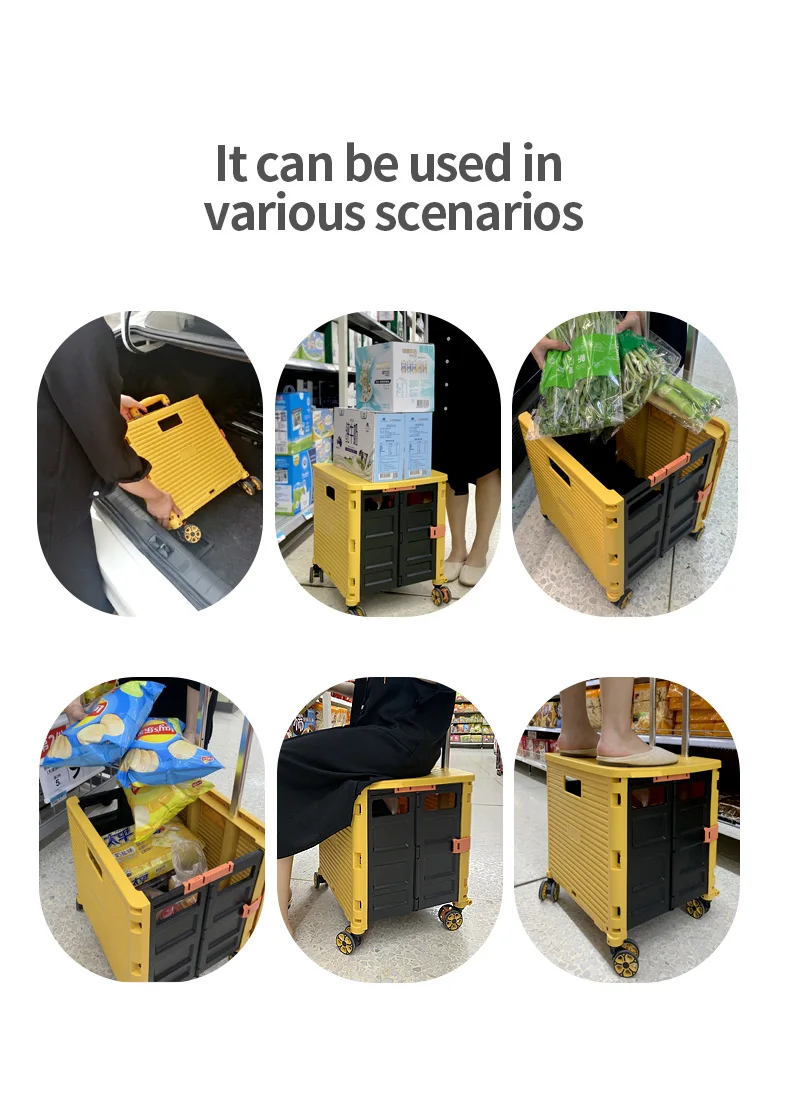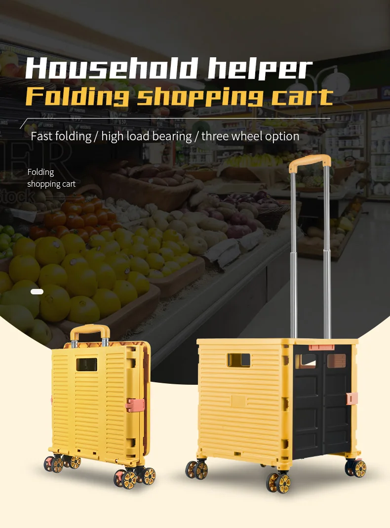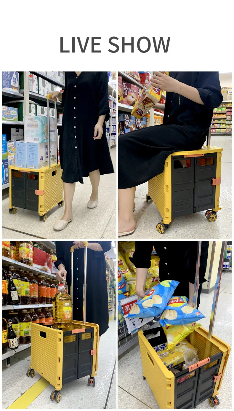 Multi-function plastic folding shopping luggage trolley with cover and four wheels