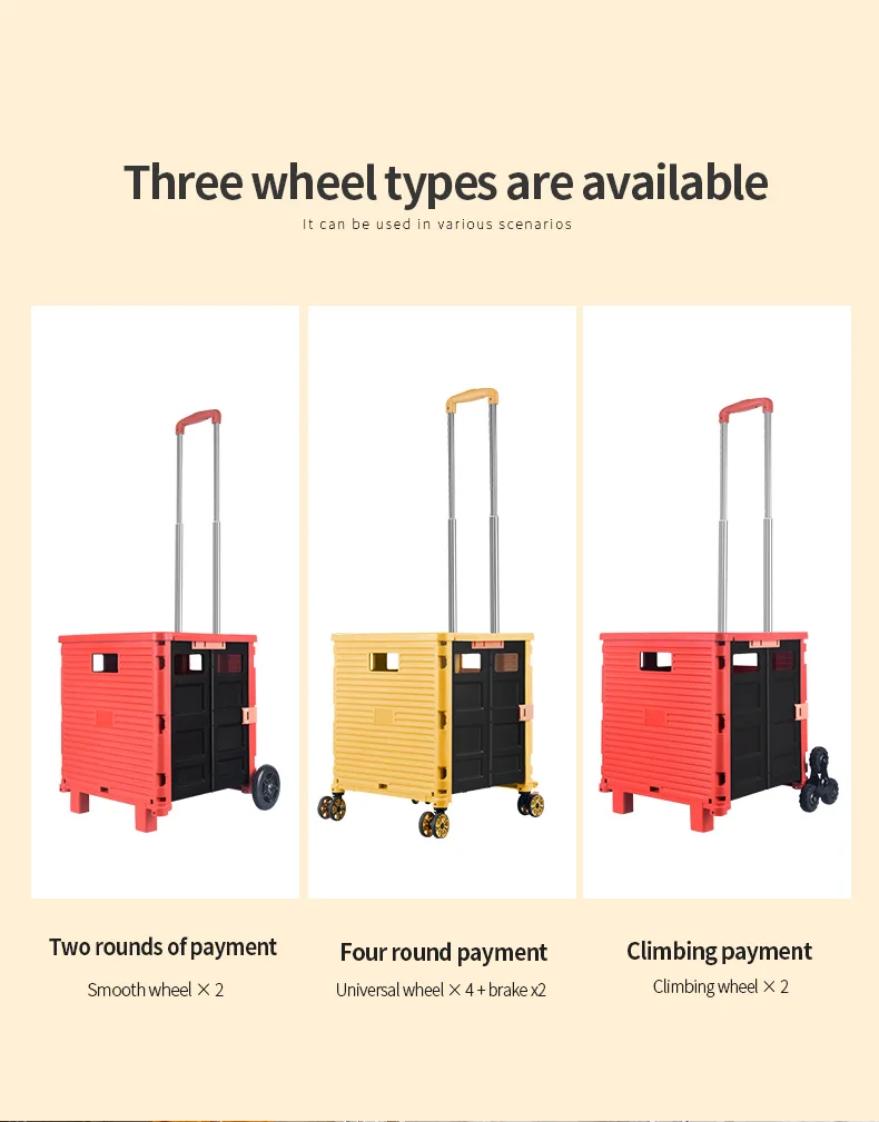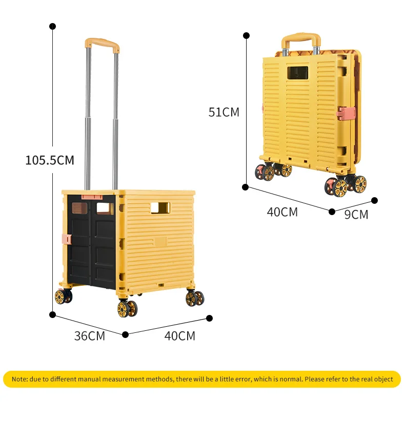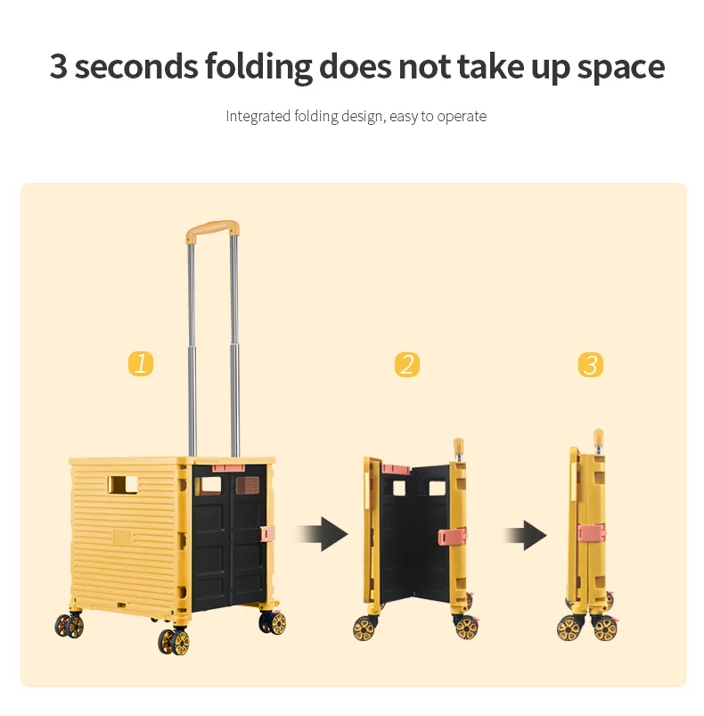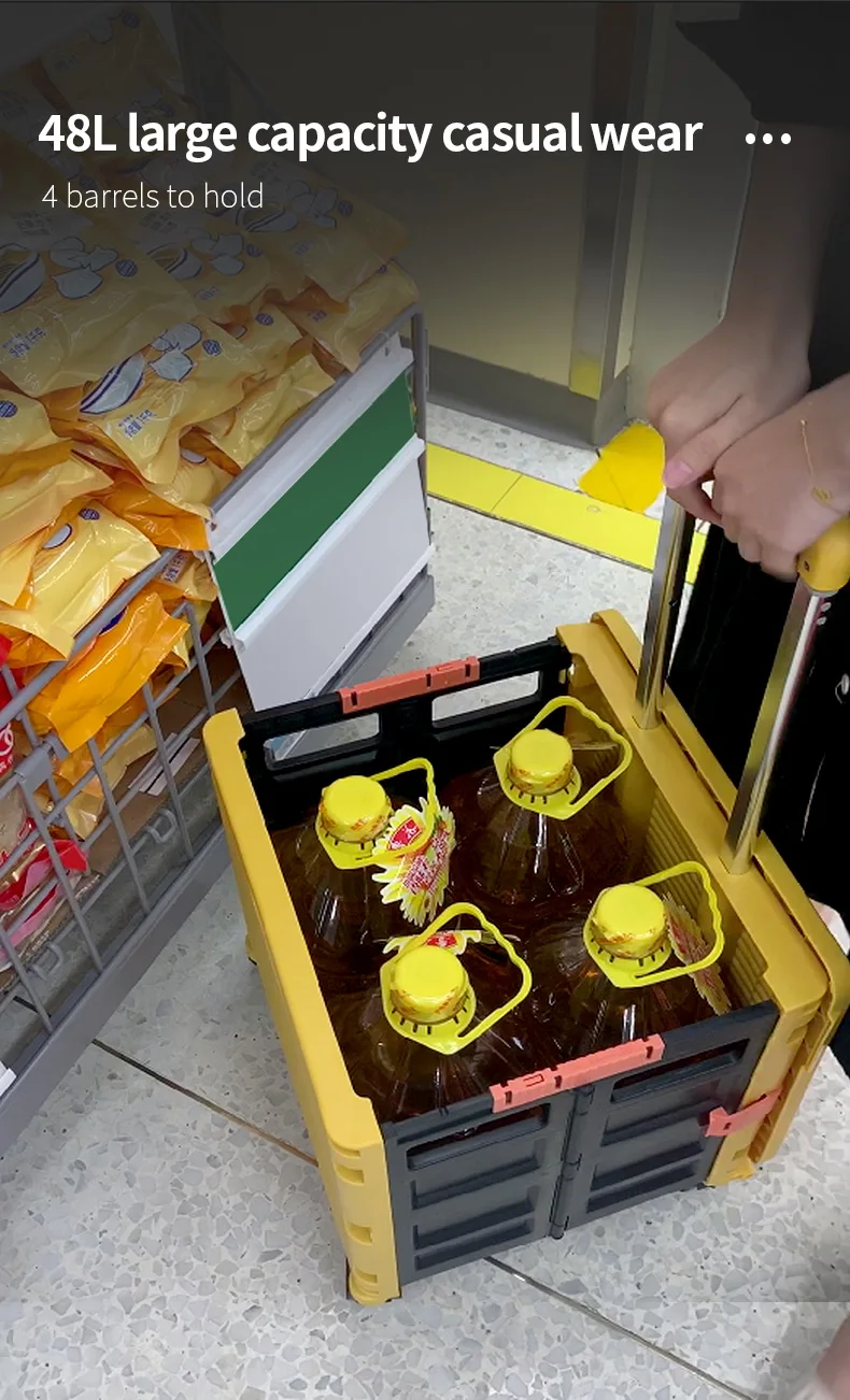 Multi-function plastic folding shopping luggage trolley with cover and four wheels