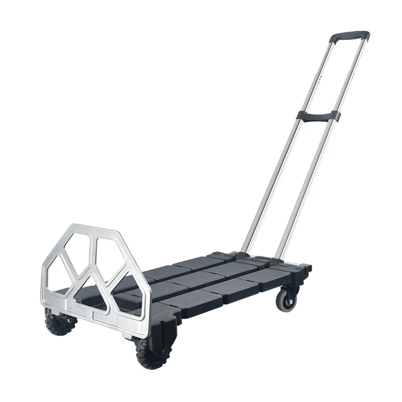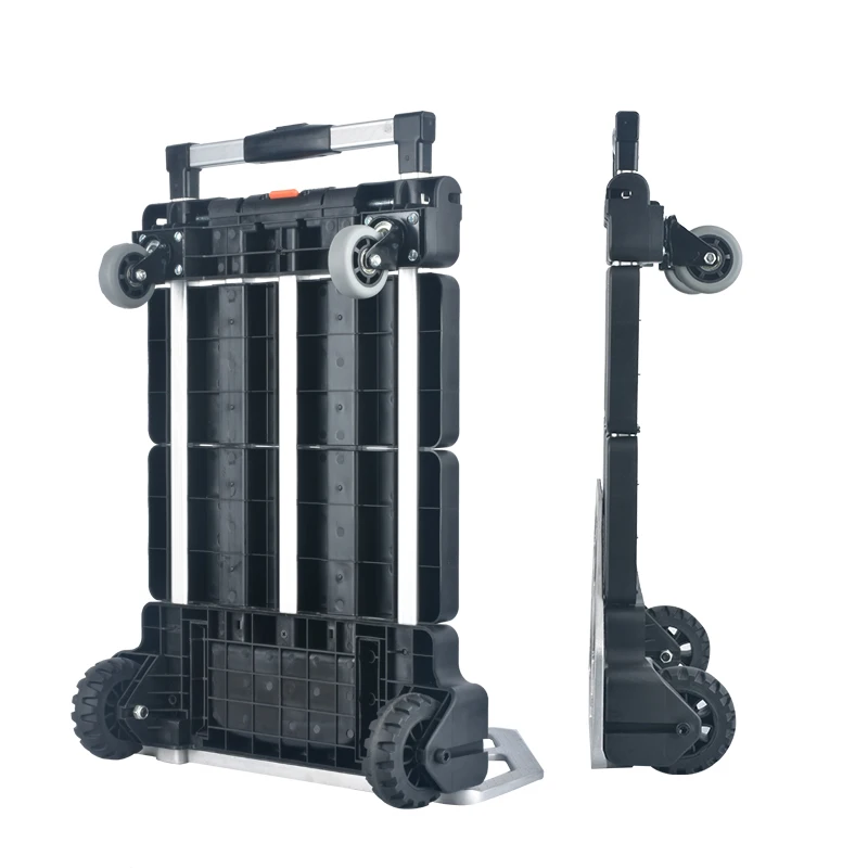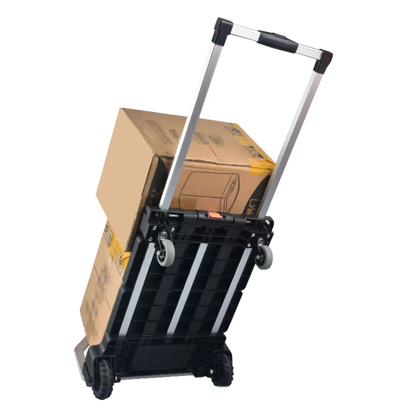Portable telescopic foldable hand trolley black collapsible cart with wheels