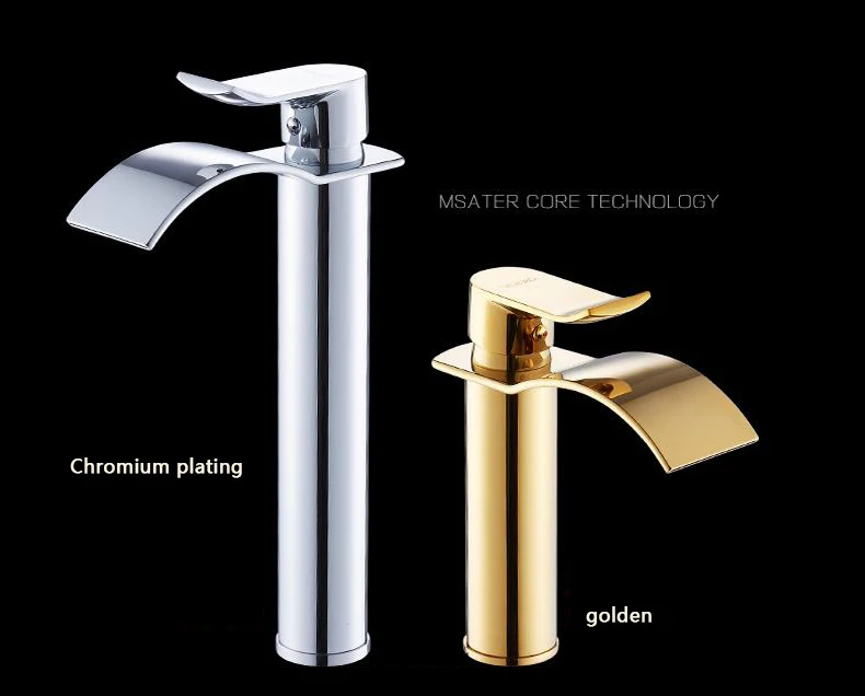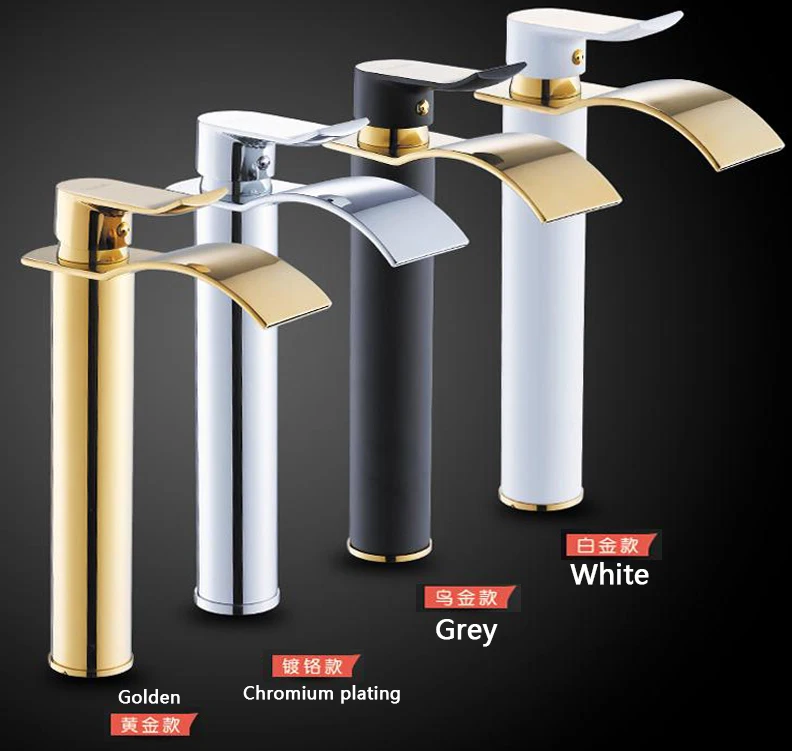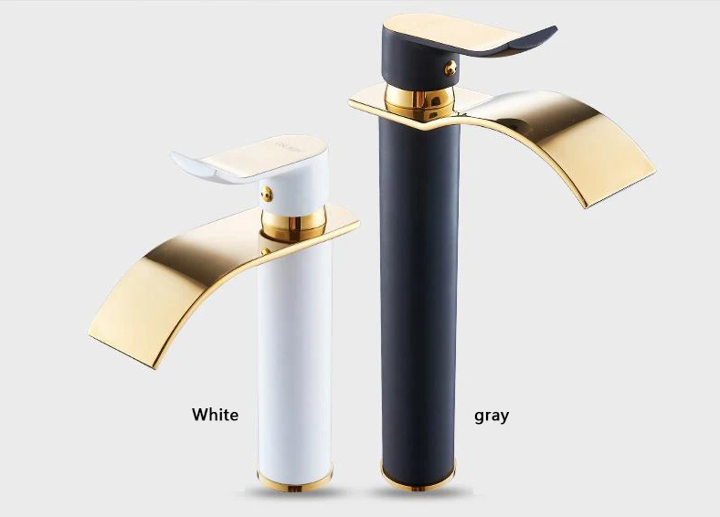 Avatar BasinFaucet Gold and white Waterfall BrassMixer Tap Hot and Cold Sink