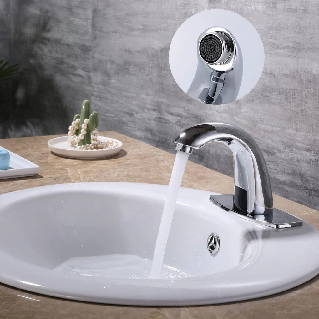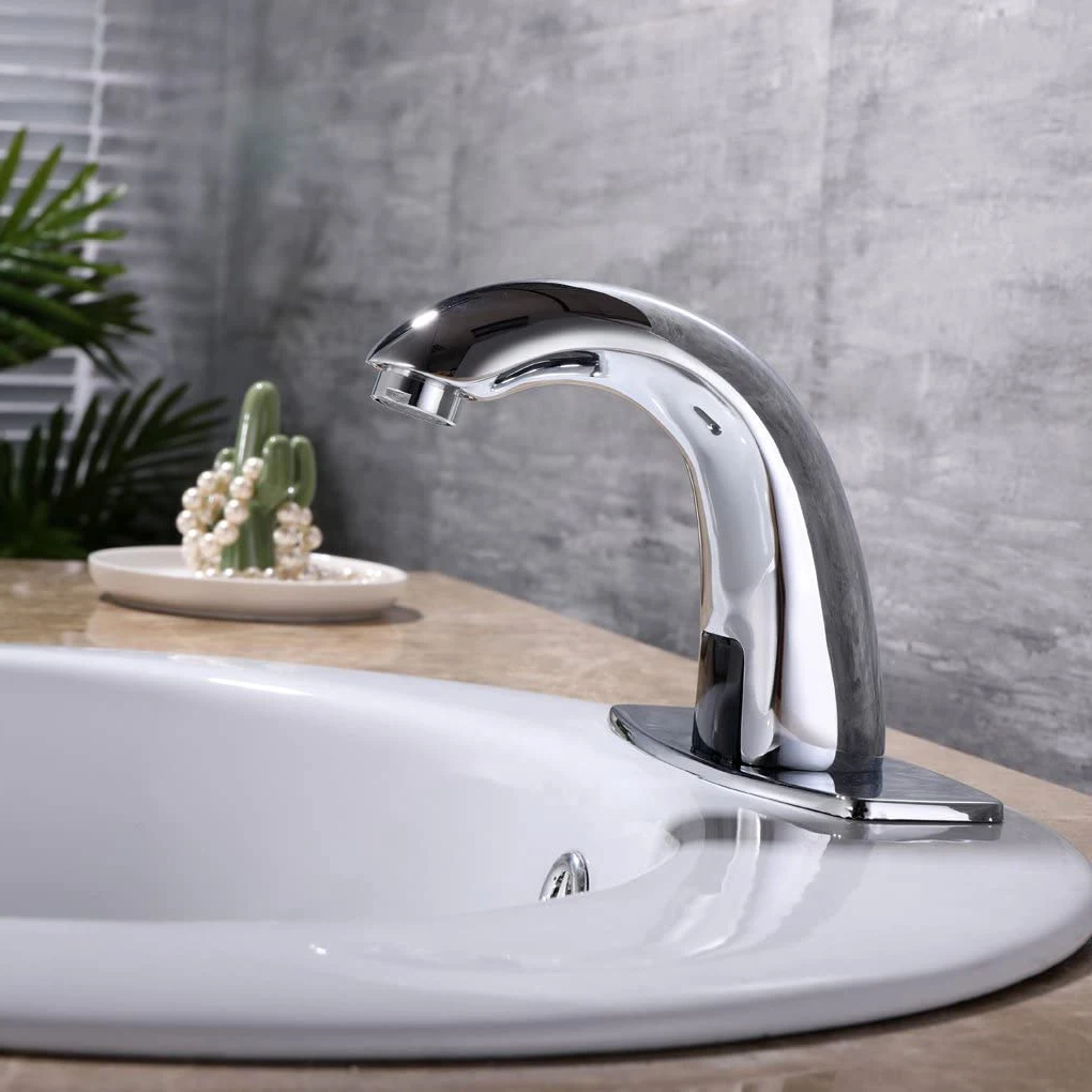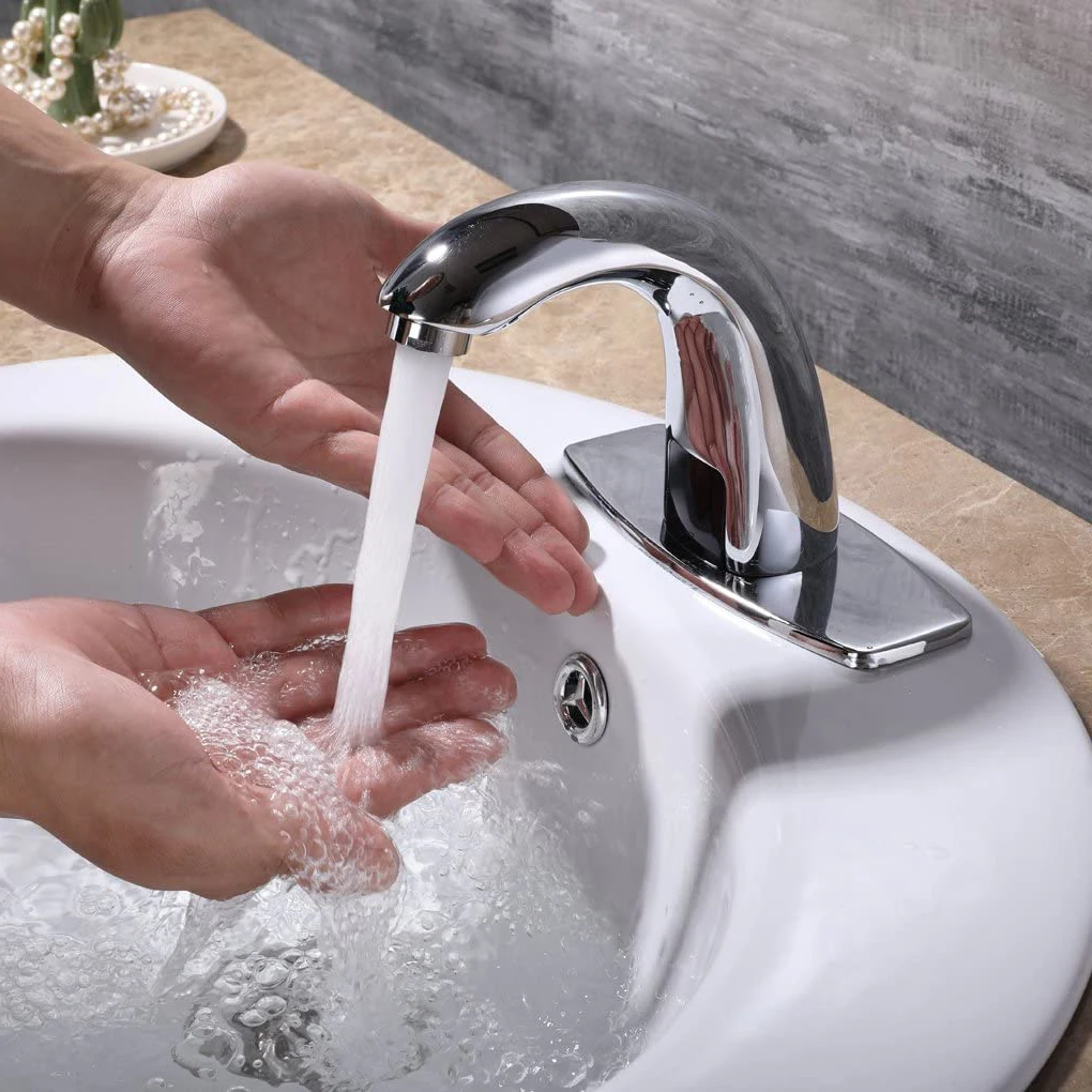Automatic Sensor Touchless Bathroom Sink Faucet with Hole Cover Plate Bathroom faucet with Control Box and Temperature mixer