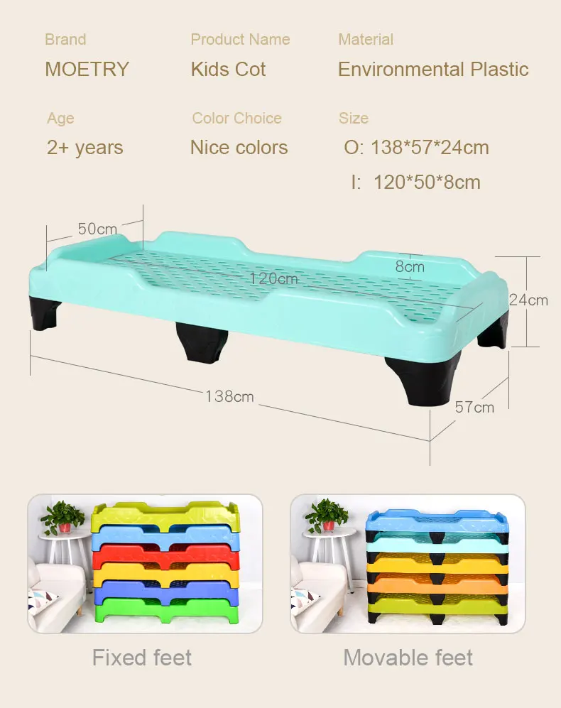 Moetry Cheap Preschol Beds Plastic Stacking Cots Space Saving Creche Napping Kids Beds for Daycare Kindergarten