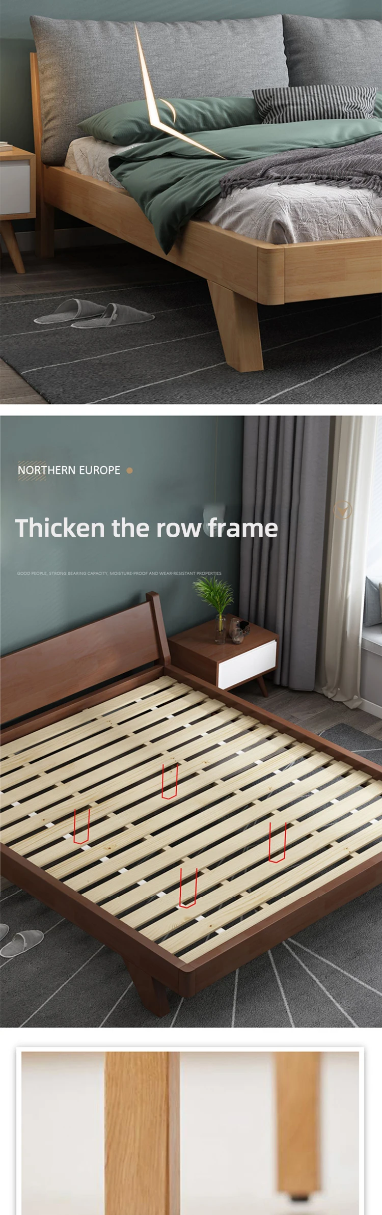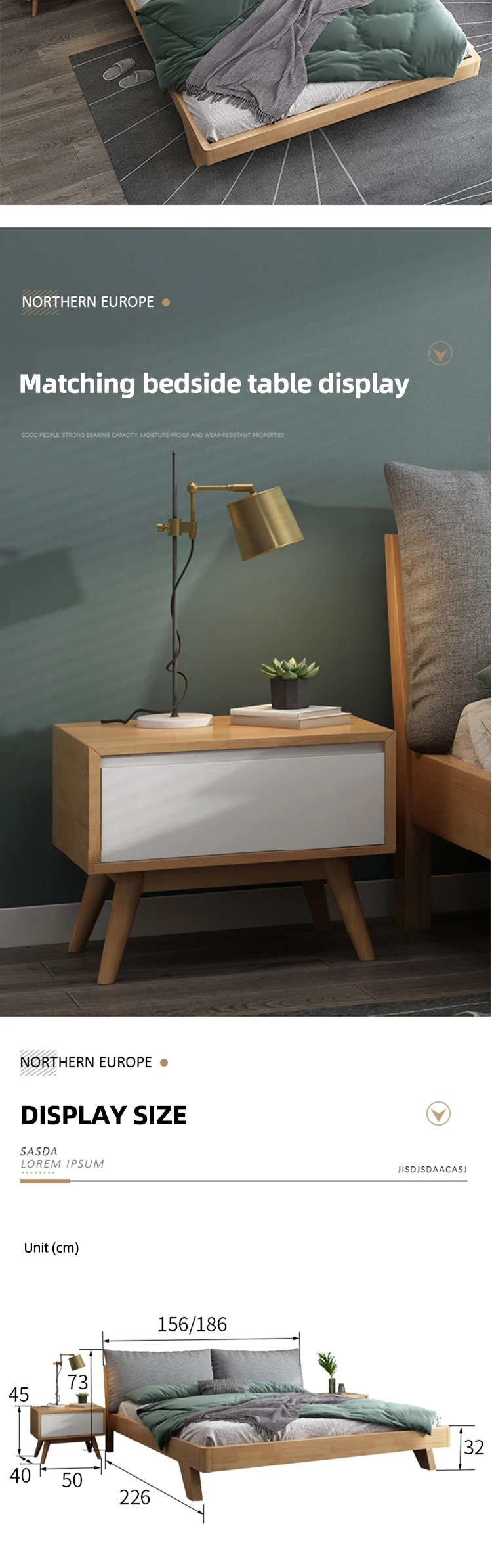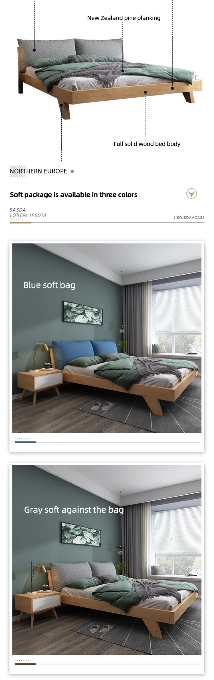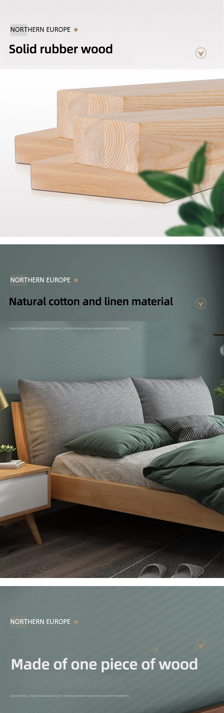 Home Movable Housing Furniture & Household Appliances Bedroom Furniture Beds Ganzhou Hong Ru Zhong Trading Company Limited HRZ rubber wood solid wood bed fabric soft wrap nightstand pine wood bed board suitable for hotel bedroom bed