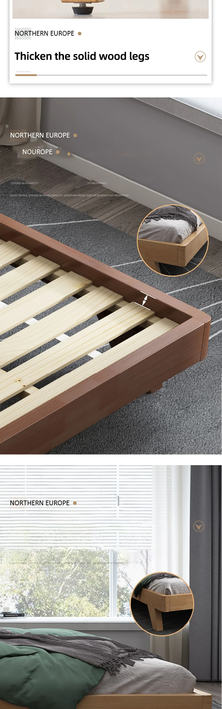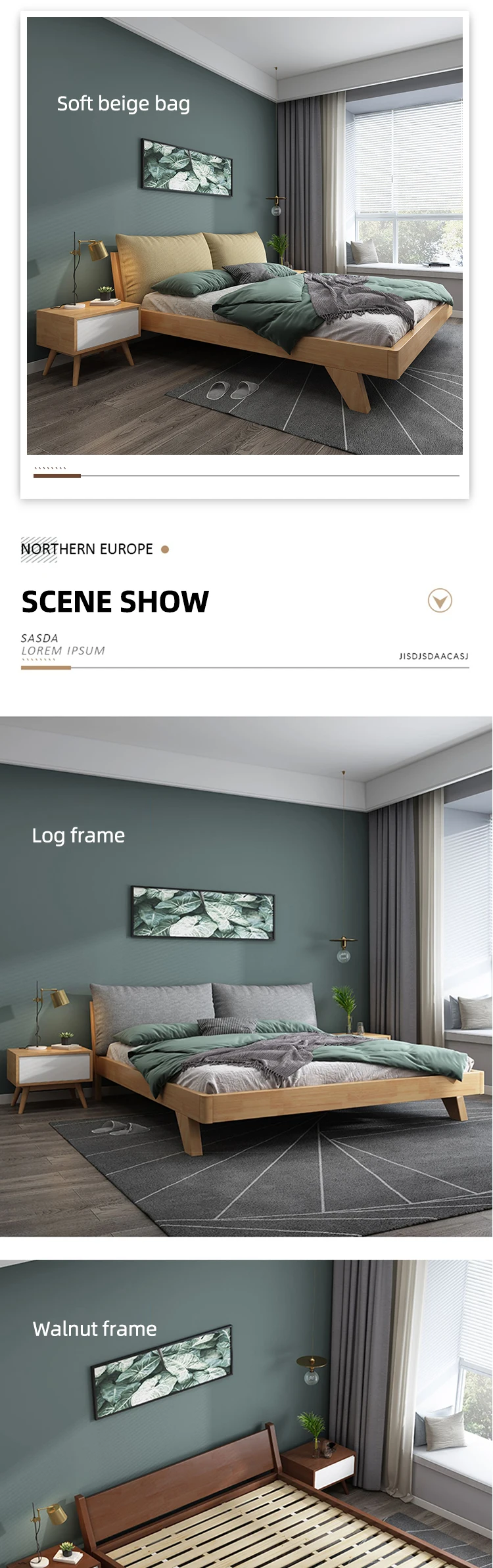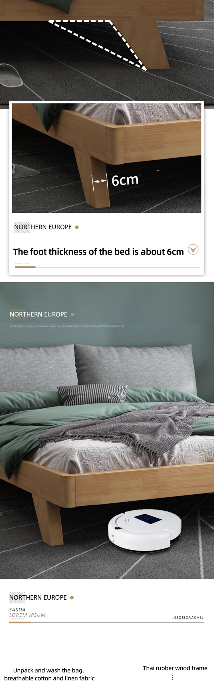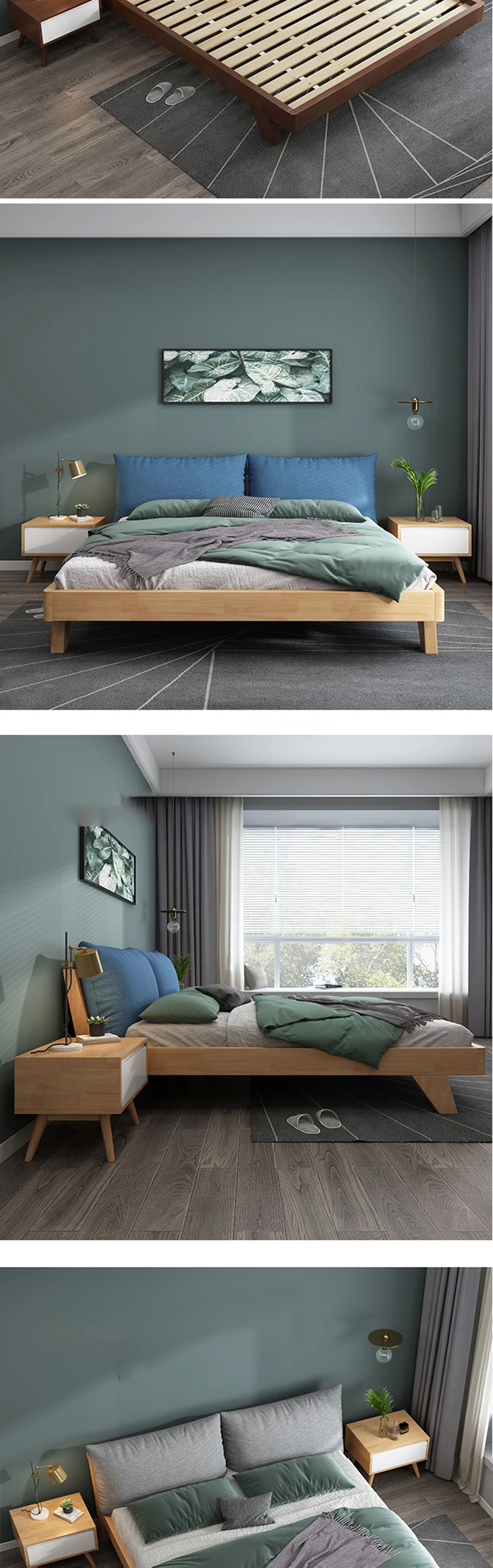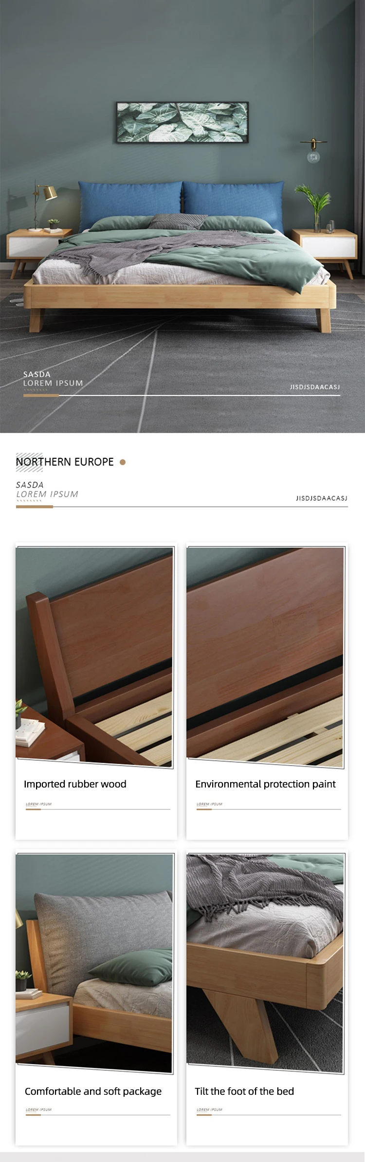 Home Movable Housing Furniture & Household Appliances Bedroom Furniture Beds Ganzhou Hong Ru Zhong Trading Company Limited HRZ rubber wood solid wood bed fabric soft wrap nightstand pine wood bed board suitable for hotel bedroom bed