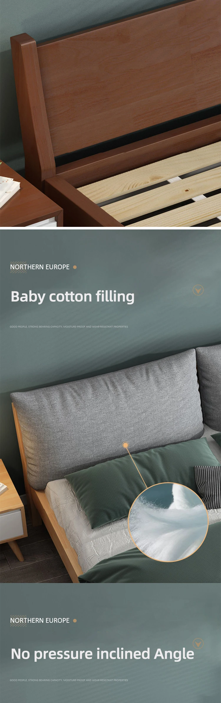 HRZ rubber wood solid wood bed fabric soft wrap nightstand pine wood bed board suitable for hotel bedroom bed