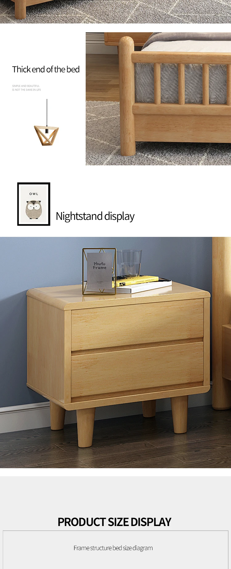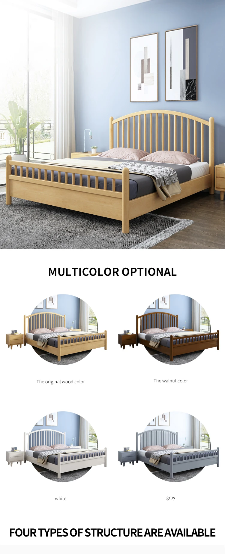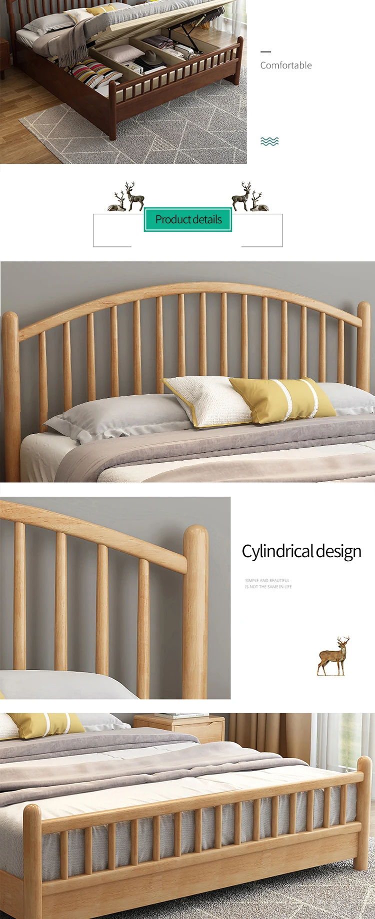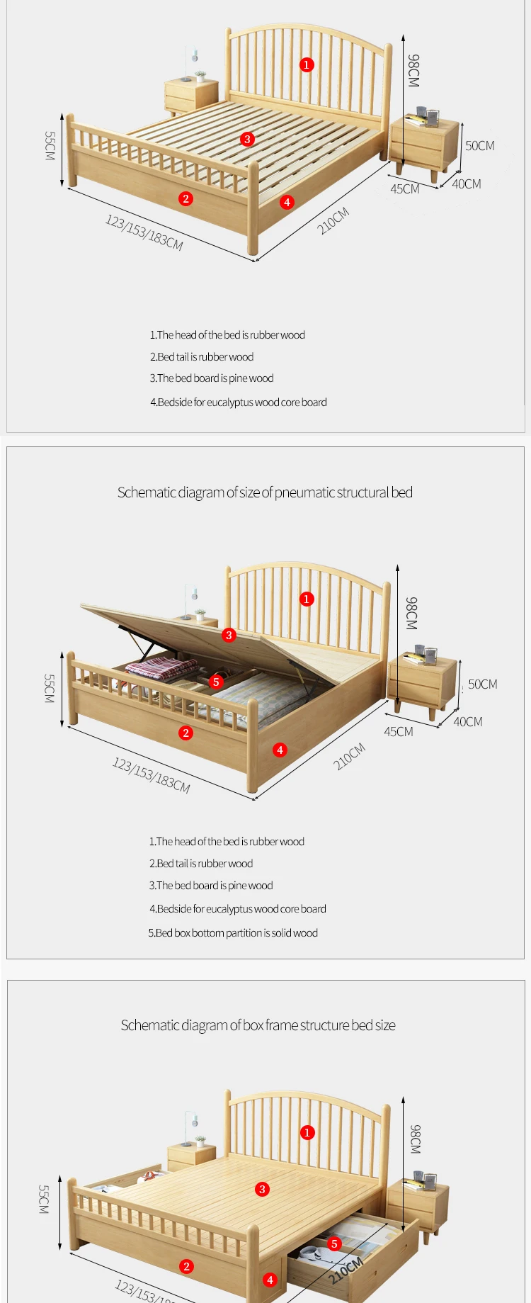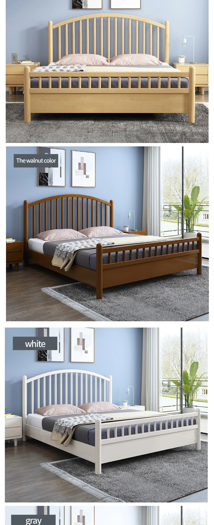 HRZ cheap durable white rubber wood double bed 1.2m / 1.5m / 1.8m hotel bed with minimal style