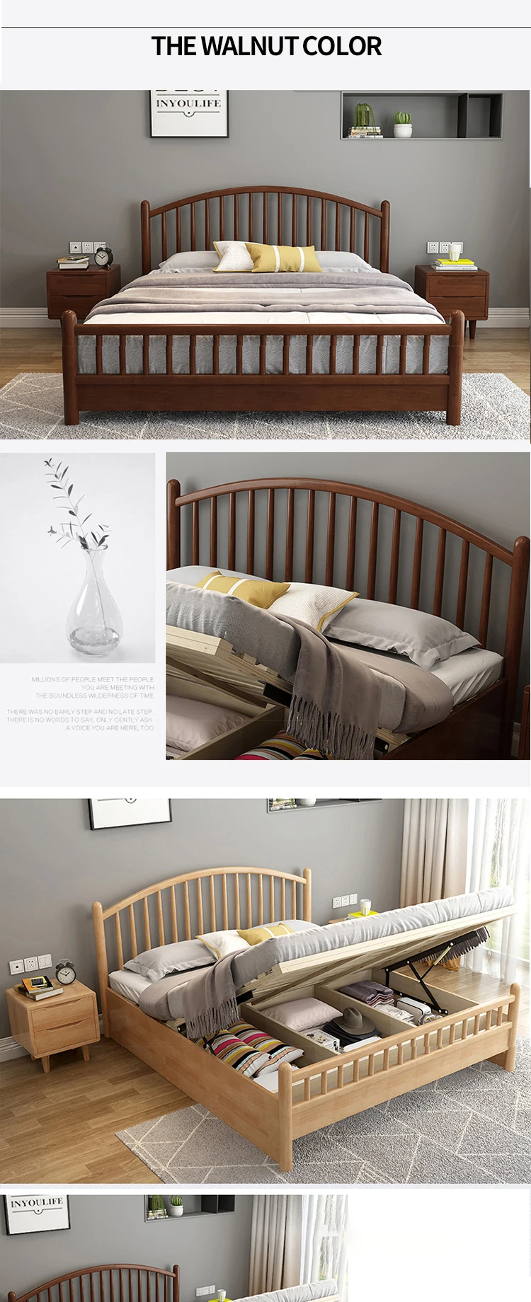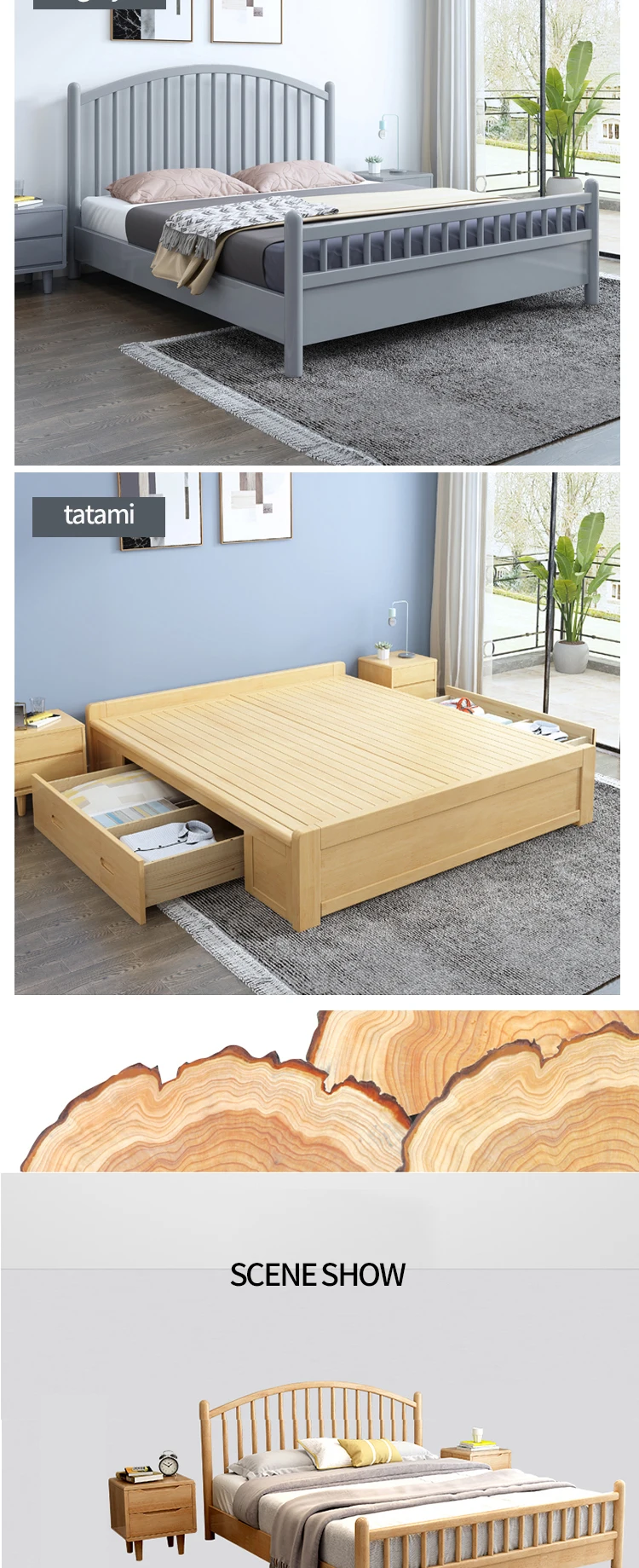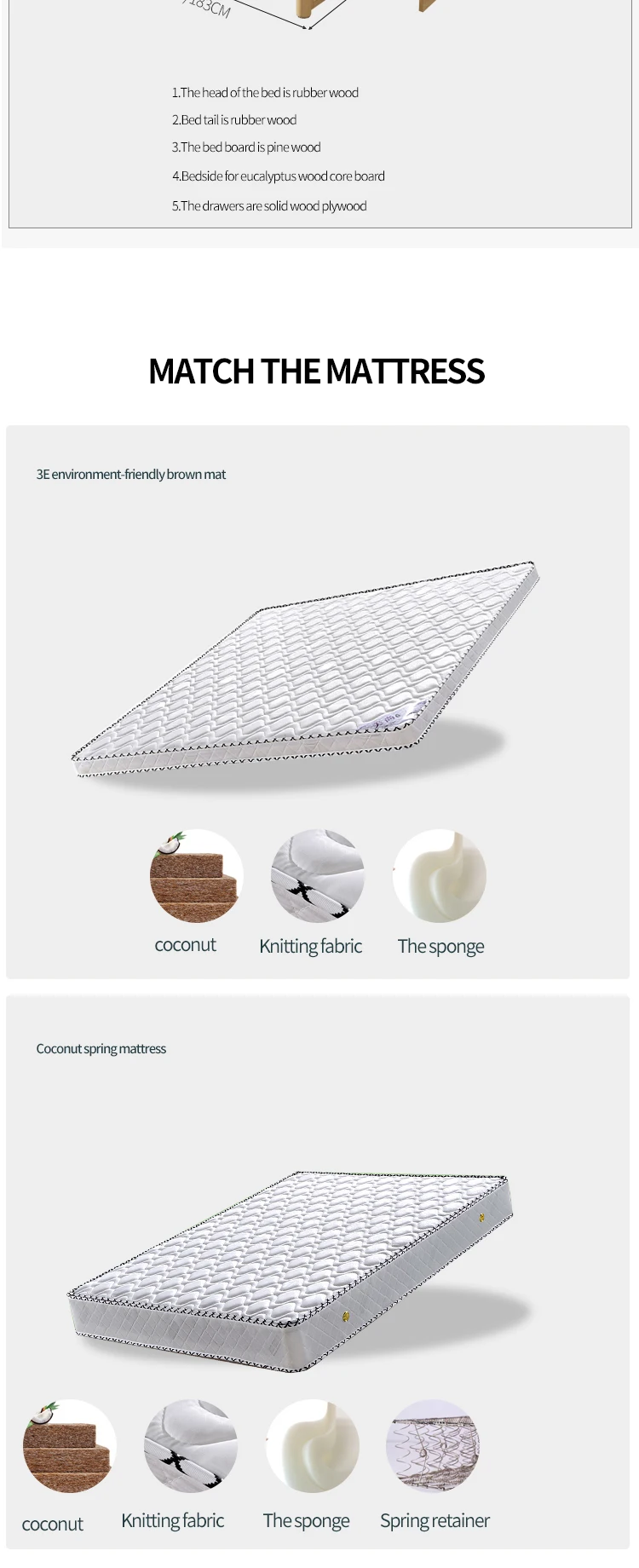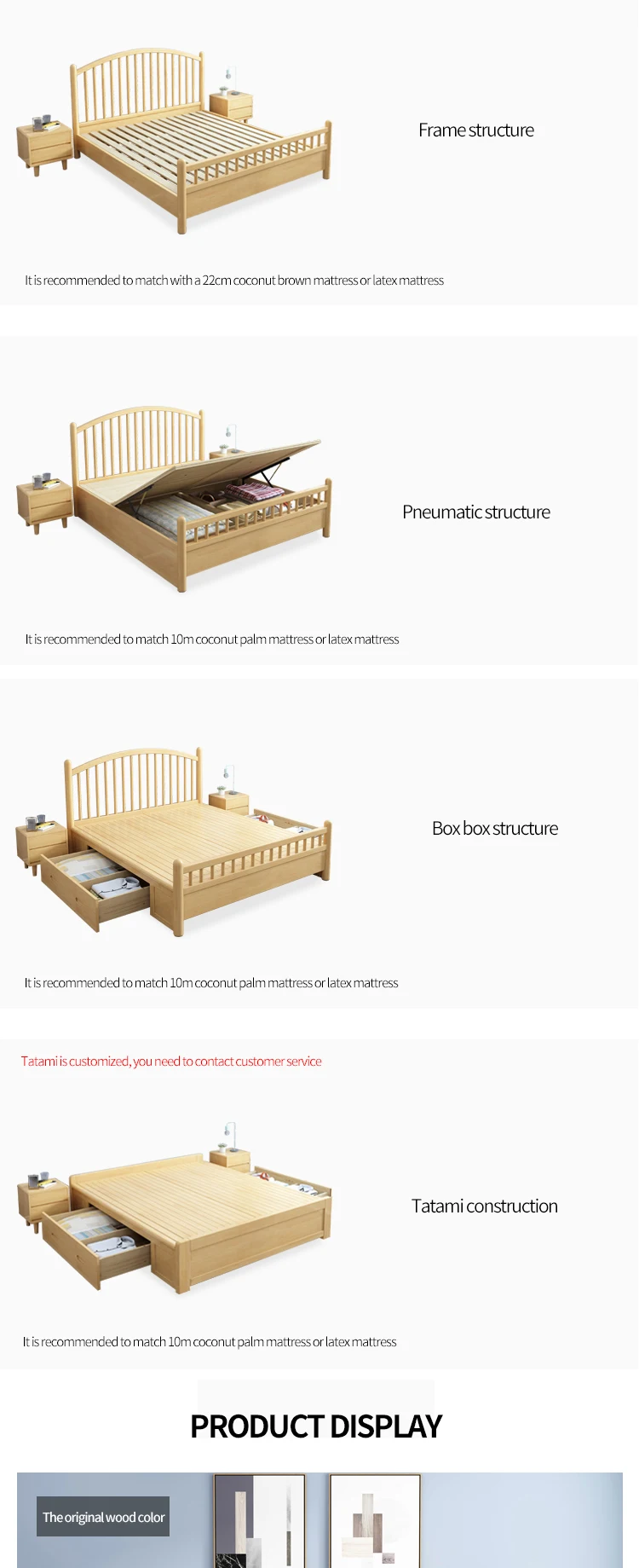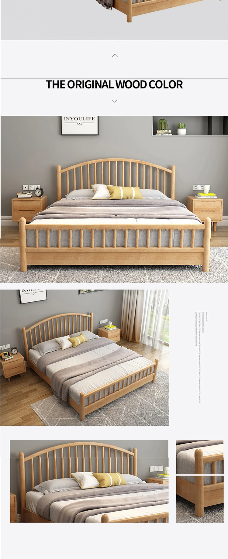 HRZ cheap durable white rubber wood double bed 1.2m / 1.5m / 1.8m hotel bed with minimal style