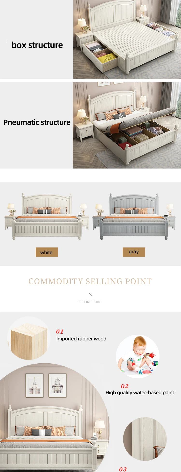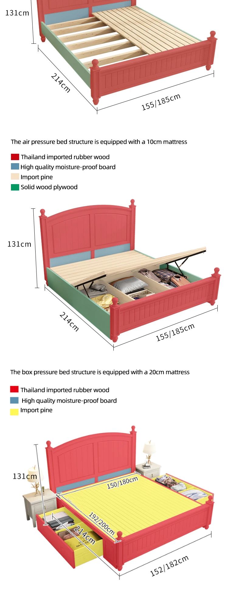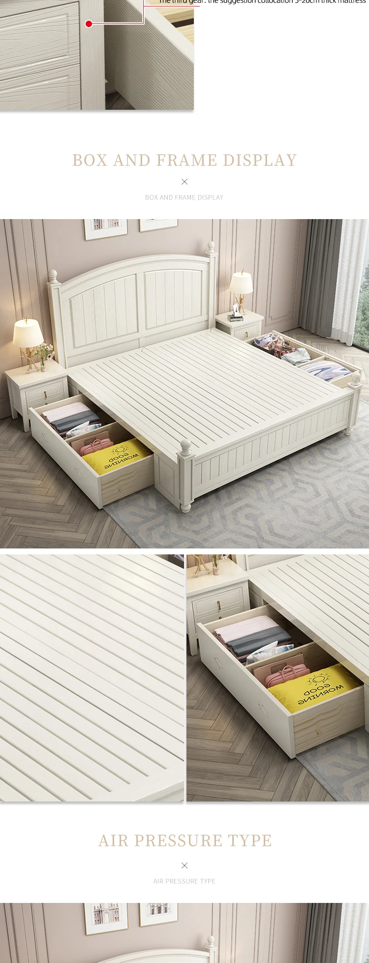 HRZ Wood Frame Lift Multifunction Ddrawer Bed Fit Hotel Bedroom Farm Furniture 1.5m 1.8m Specification Double Bed