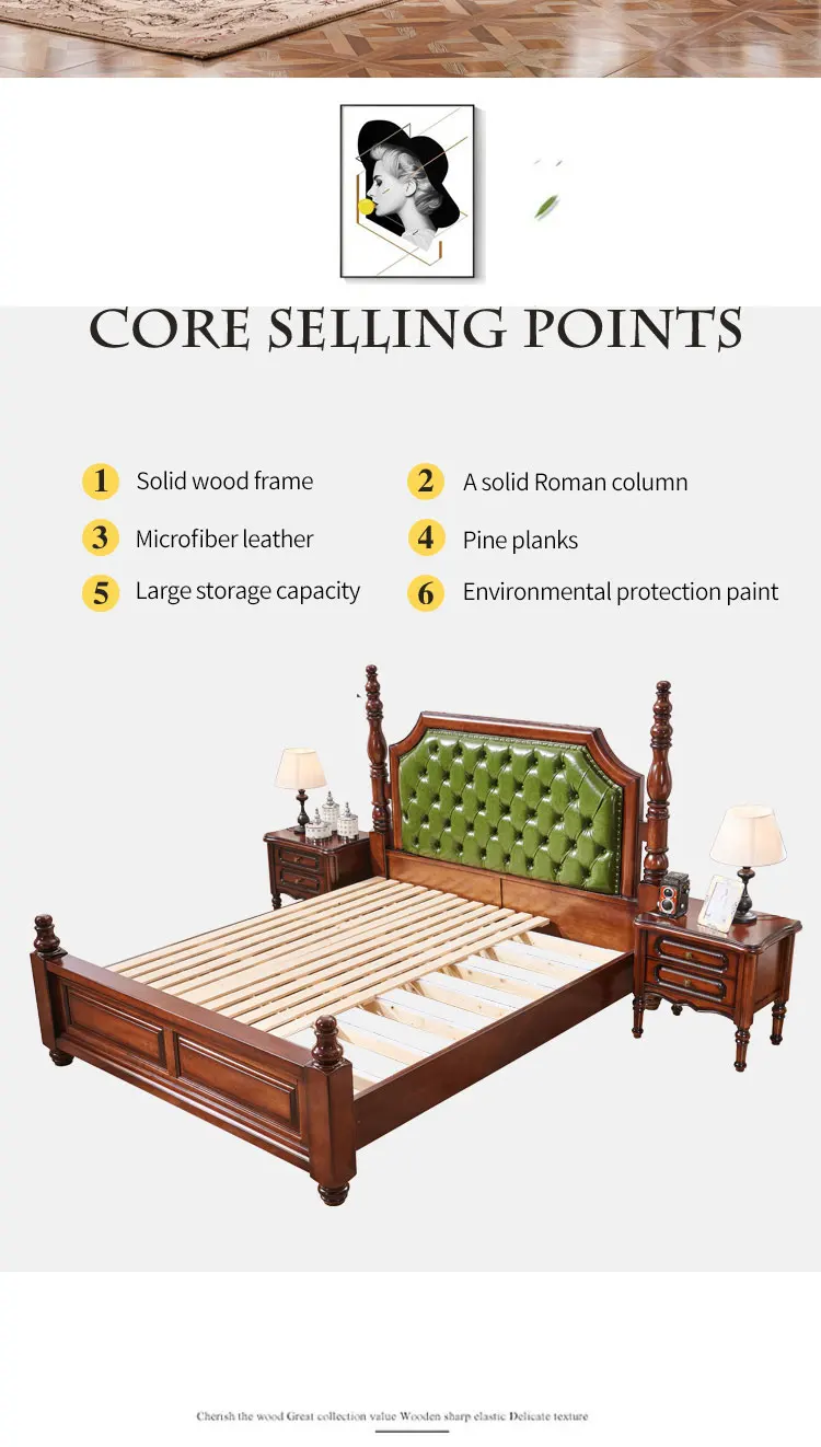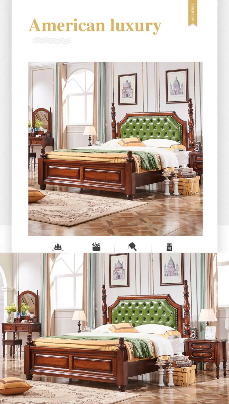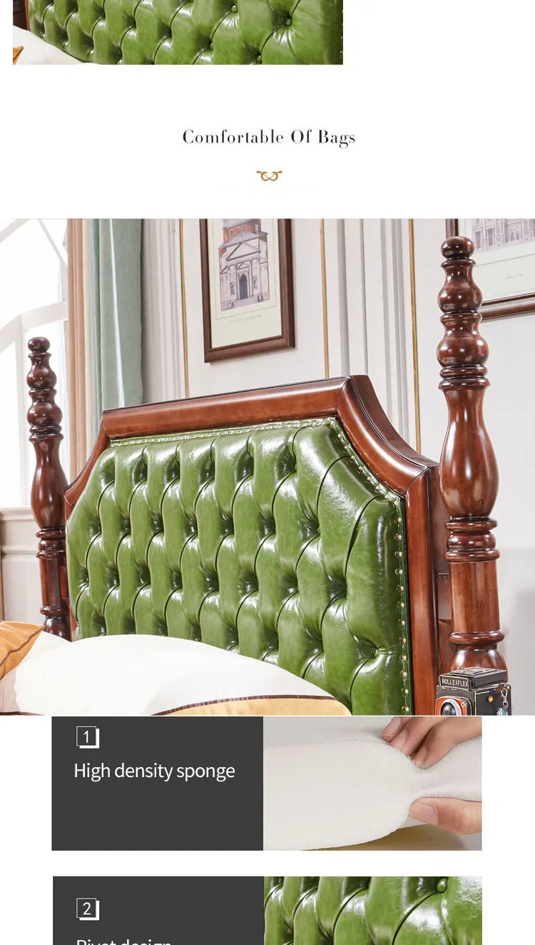 Home Movable Housing Furniture & Household Appliances Bedroom Furniture Beds Ganzhou Hong Ru Zhong Trading Company Limited HRZ A leather-backed, rubber-wood and pine adult double bed in French style