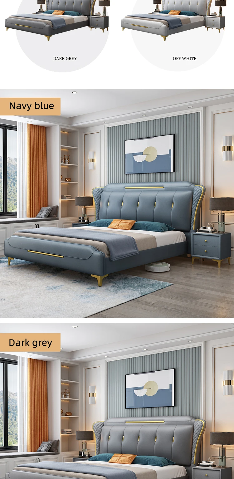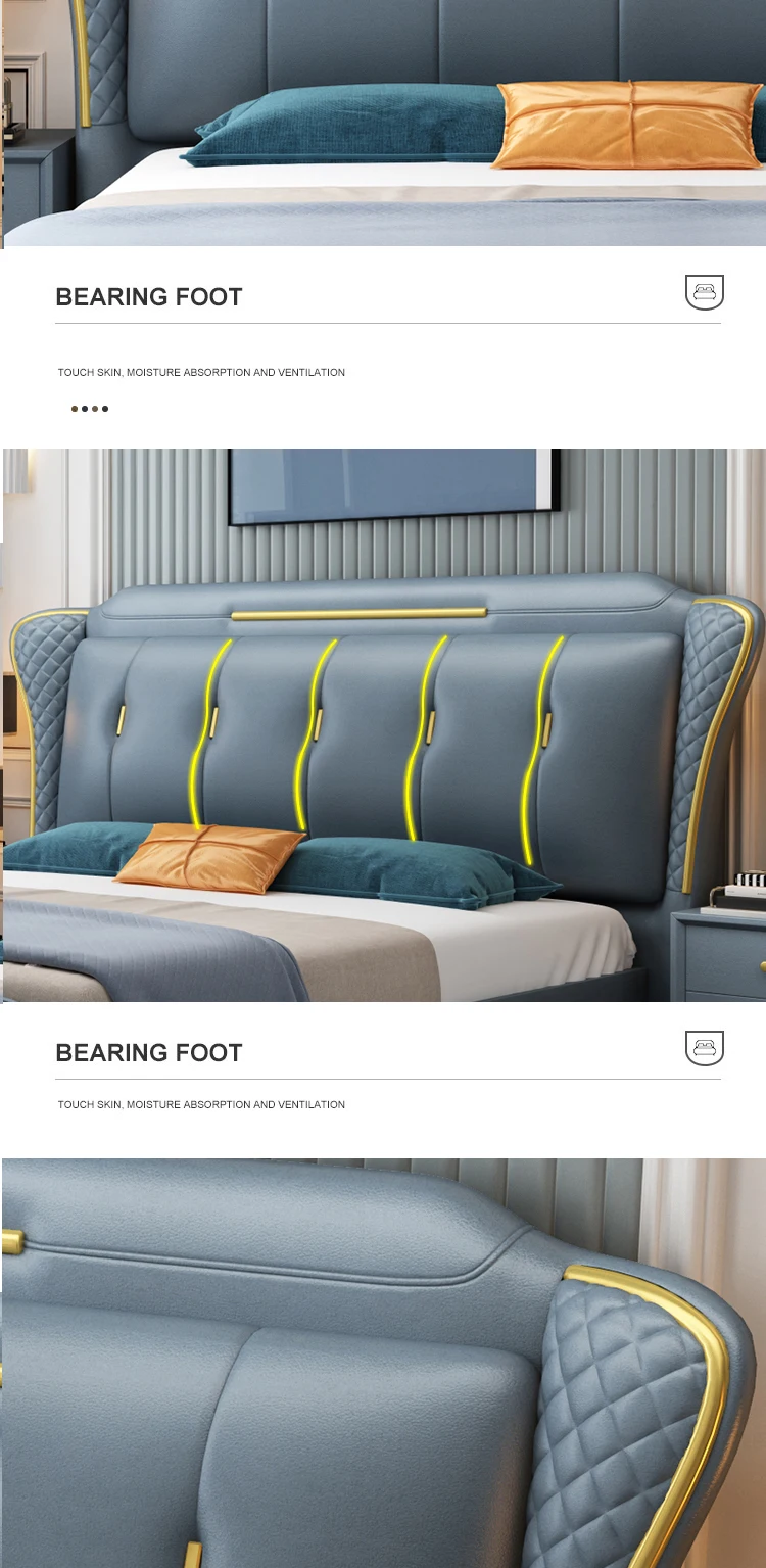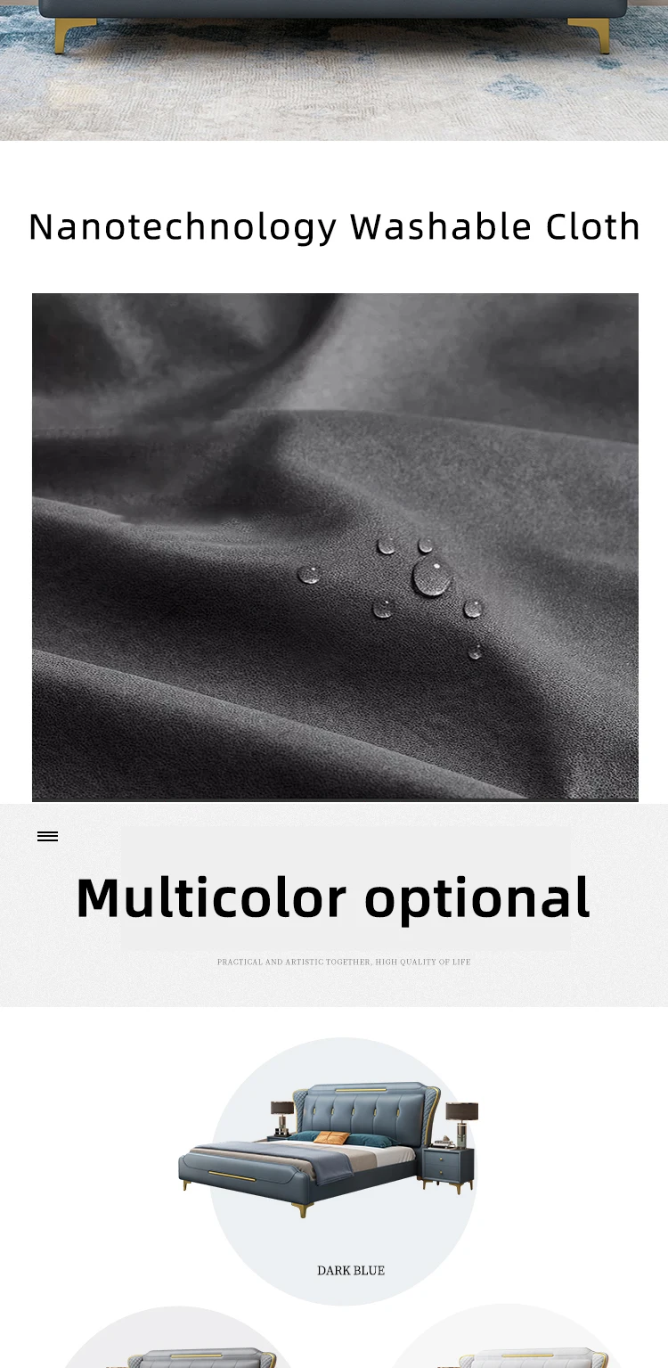 Home Movable Housing Furniture & Household Appliances Bedroom Furniture Beds Ganzhou Hong Ru Zhong Trading Company Limited HRZ Metal Decorative Frame Waterproof Technology Cloth Fabric Soft Double Bed Fashion Modern Cloth Bed