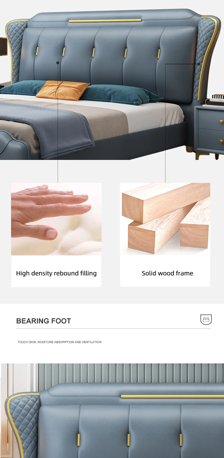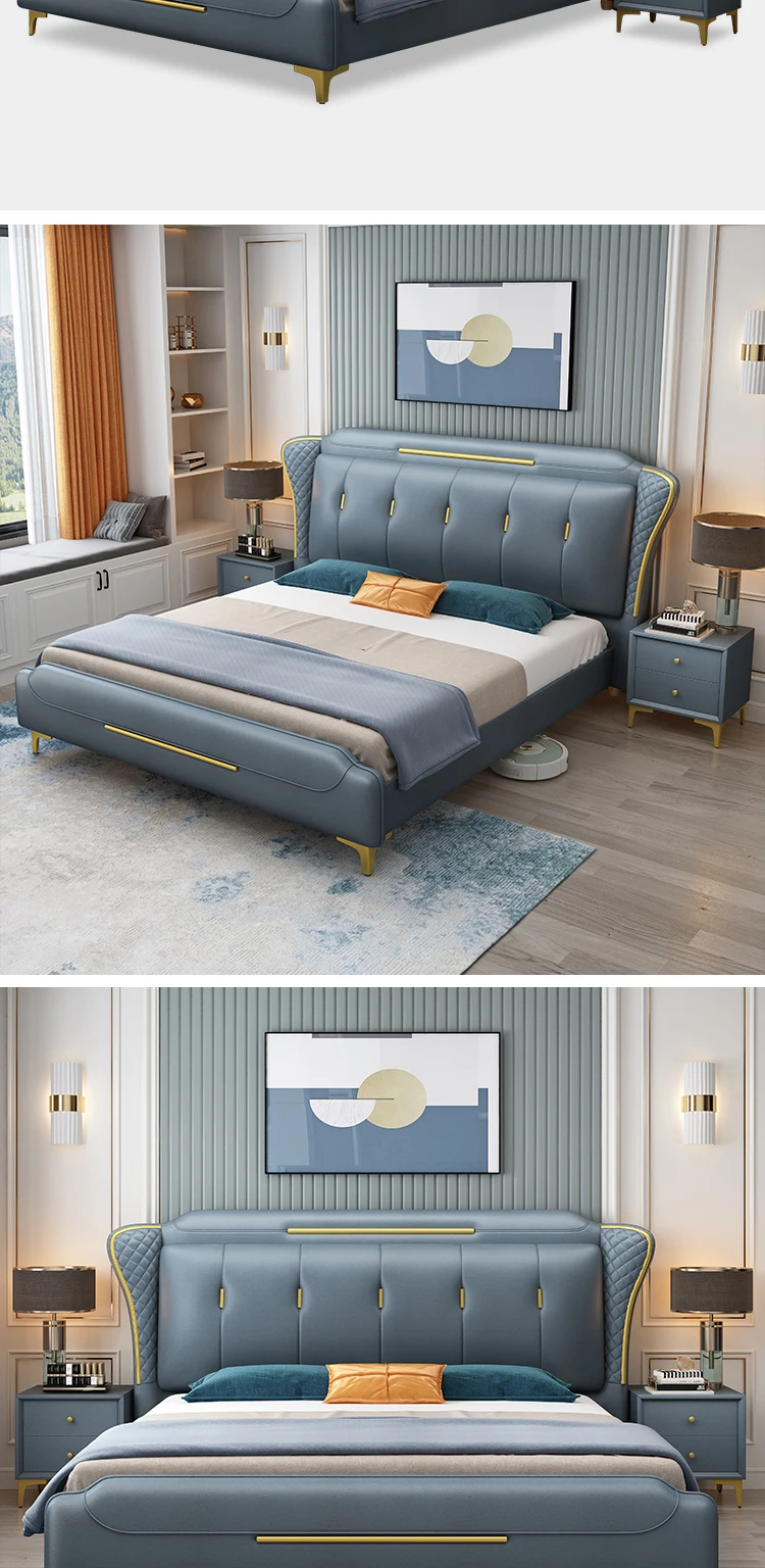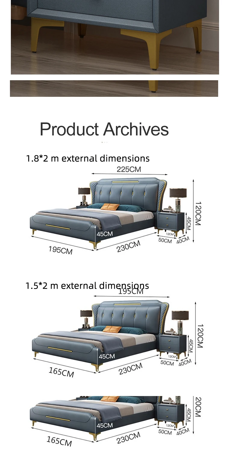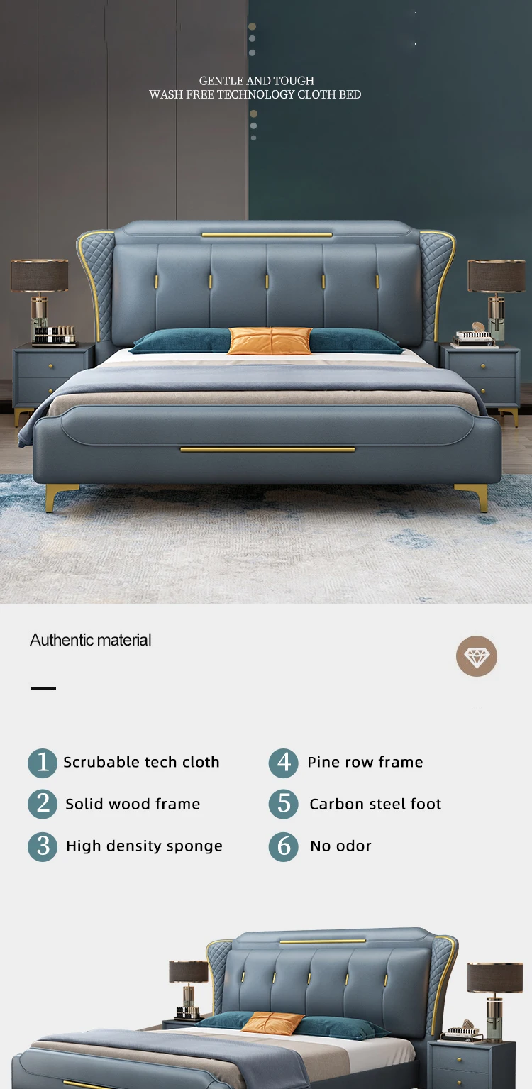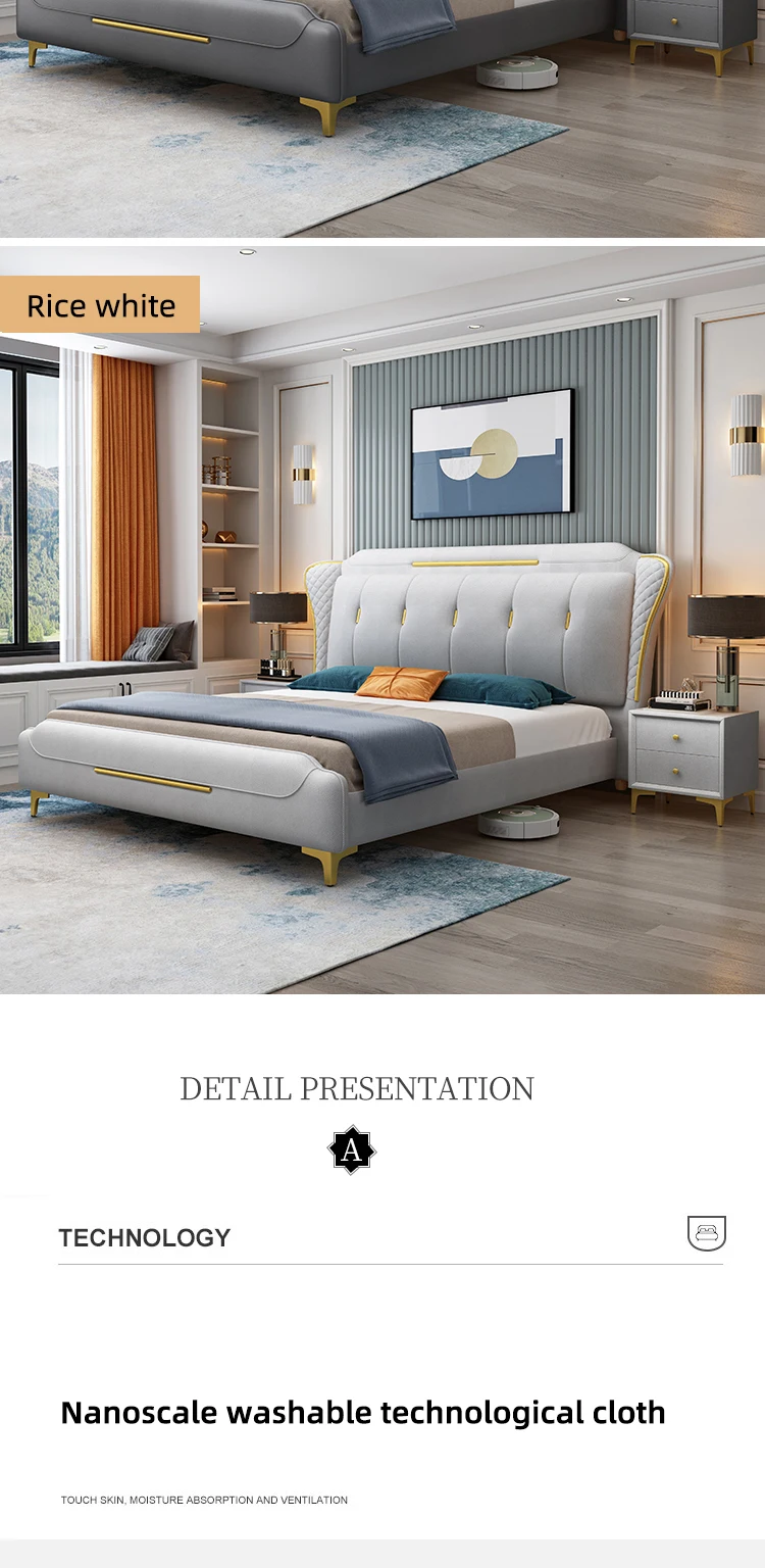 HRZ Metal Decorative Frame Waterproof Technology Cloth Fabric Soft Double Bed Fashion Modern Cloth Bed