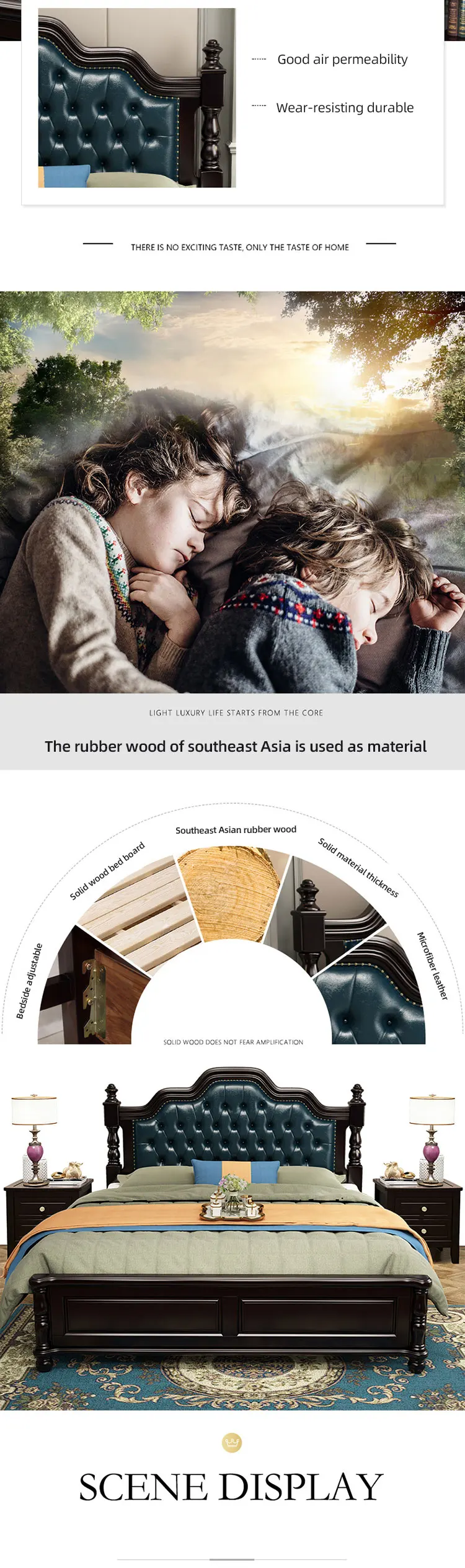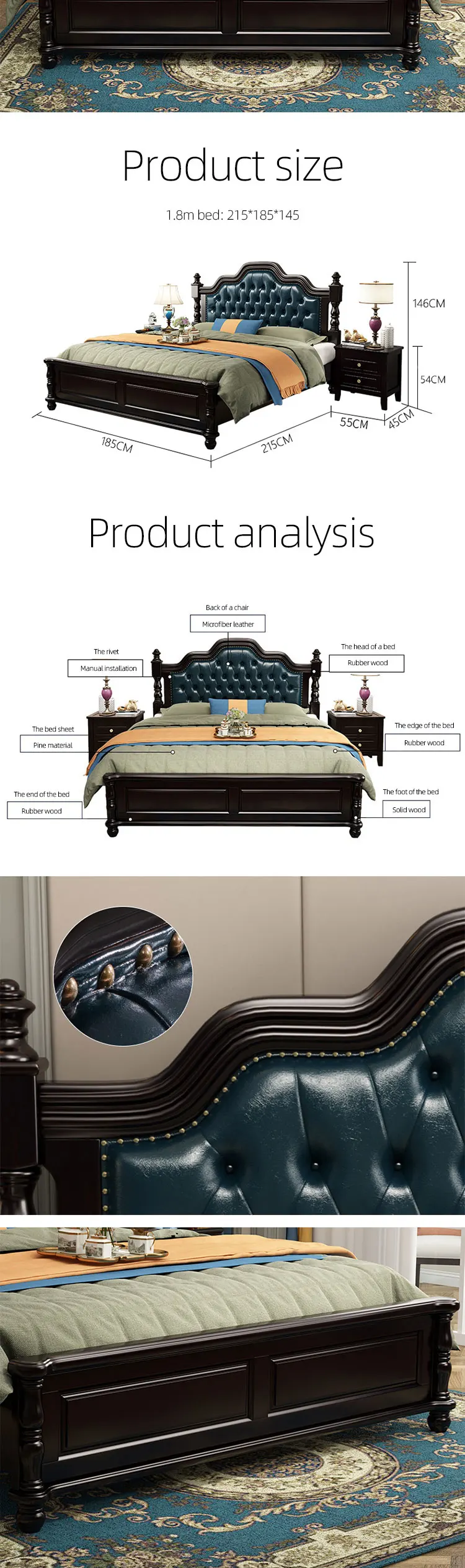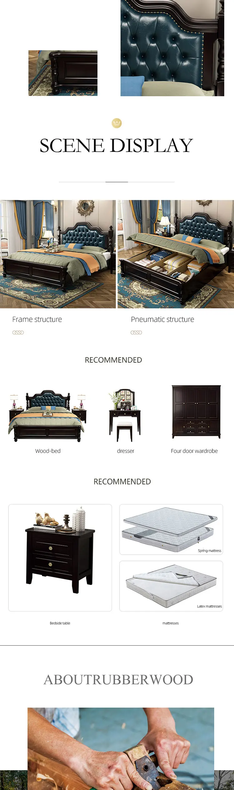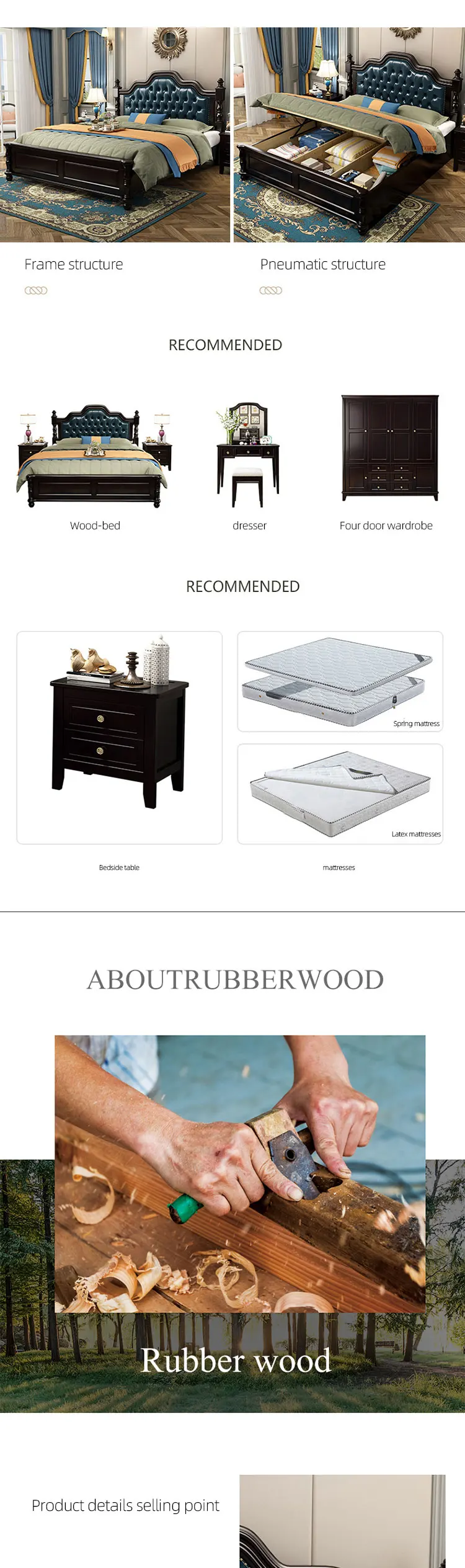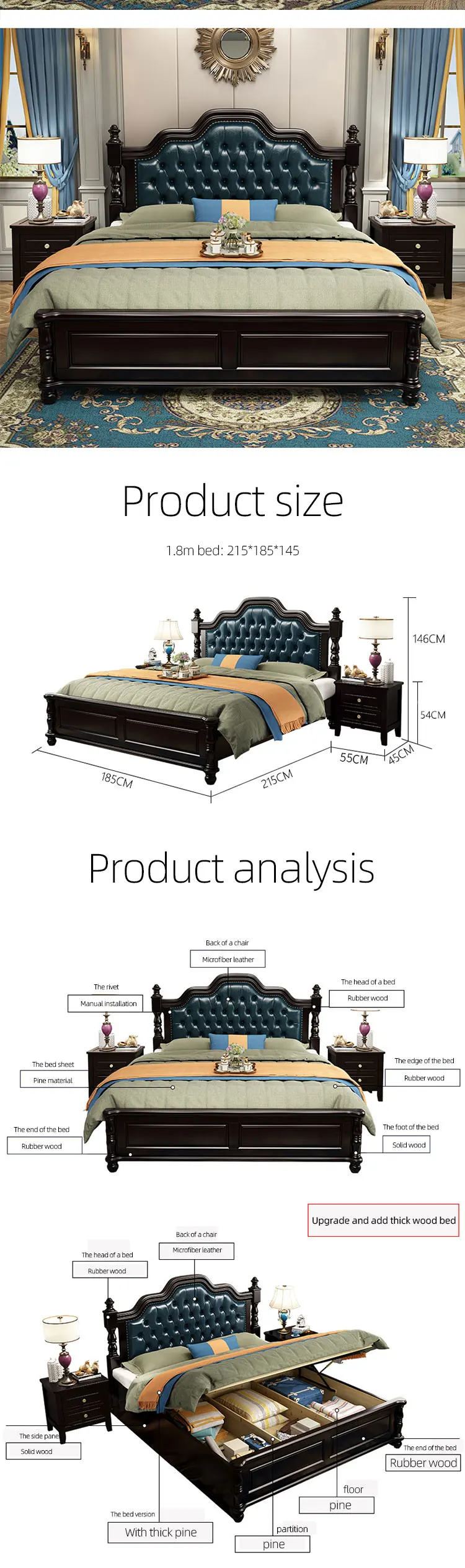 HRZ Bedroom Furniture Multifunctional with Lift Storage Box Leather Backrest Solid Wood Adult Wedding Bed