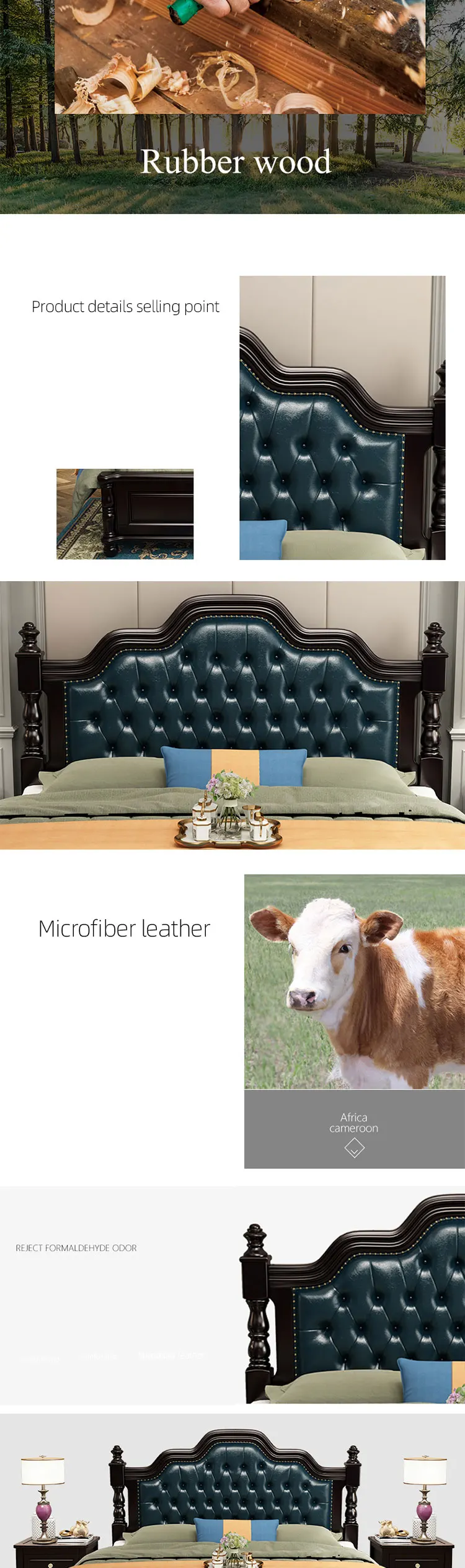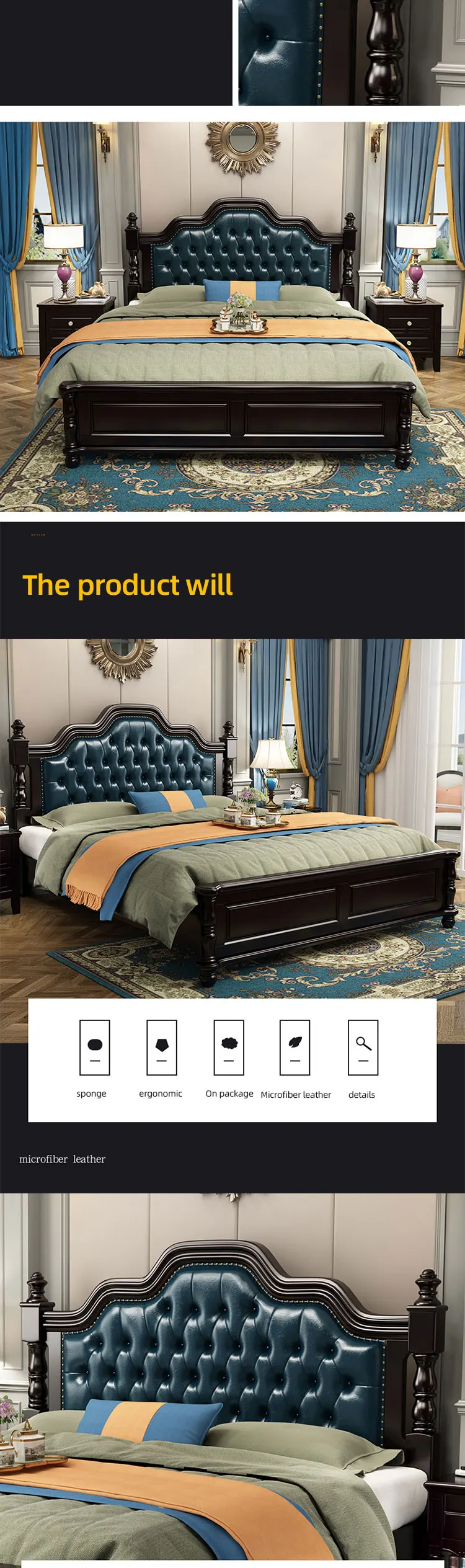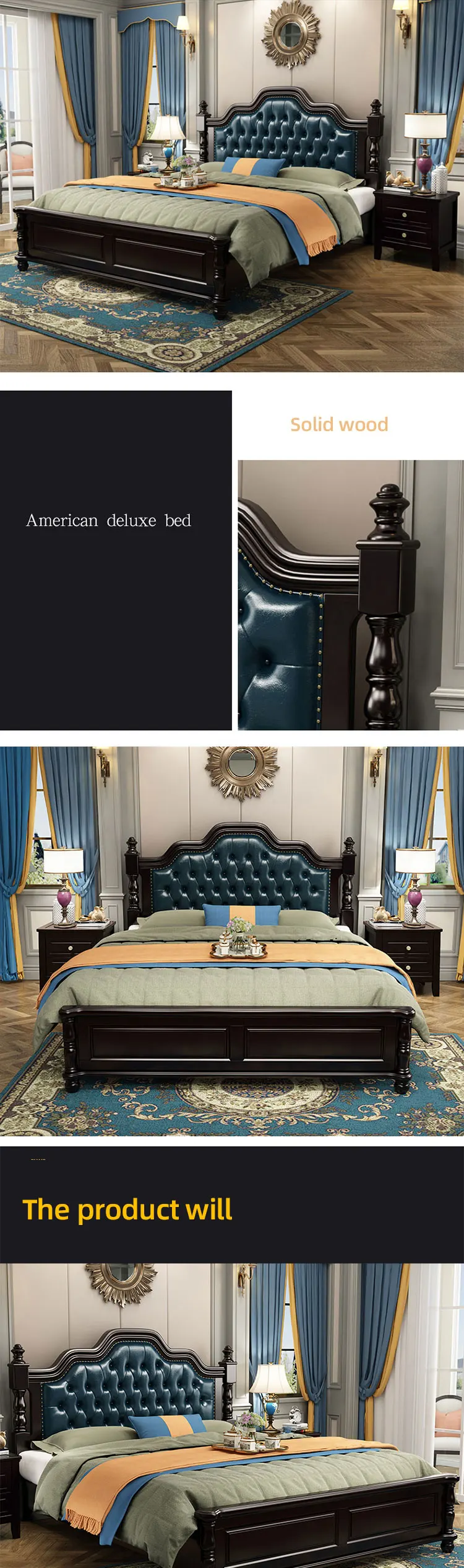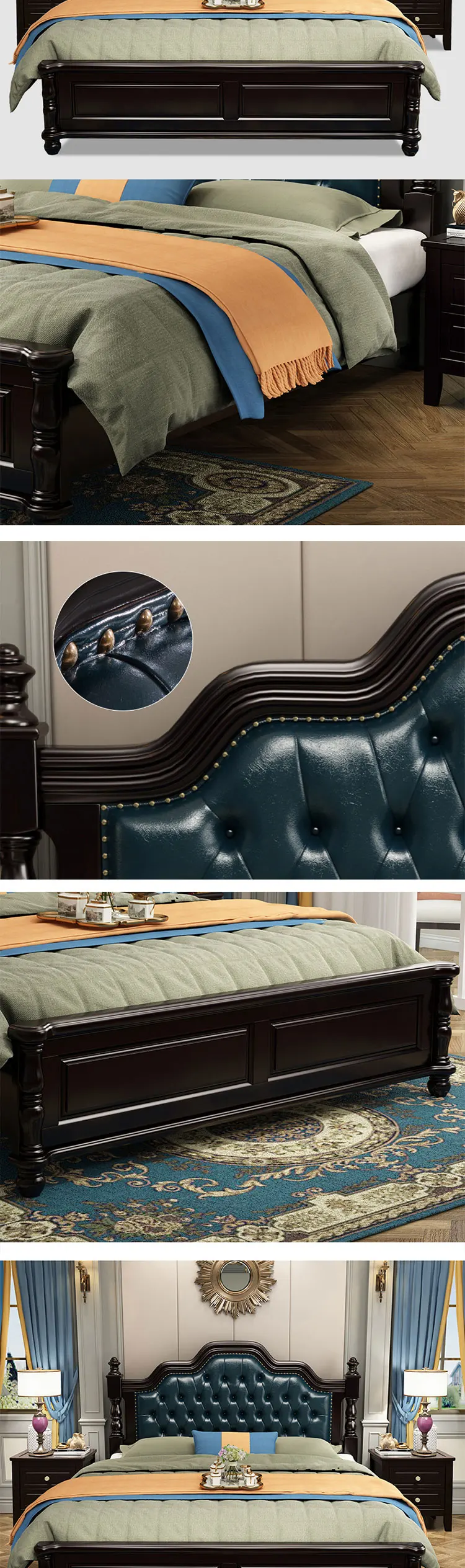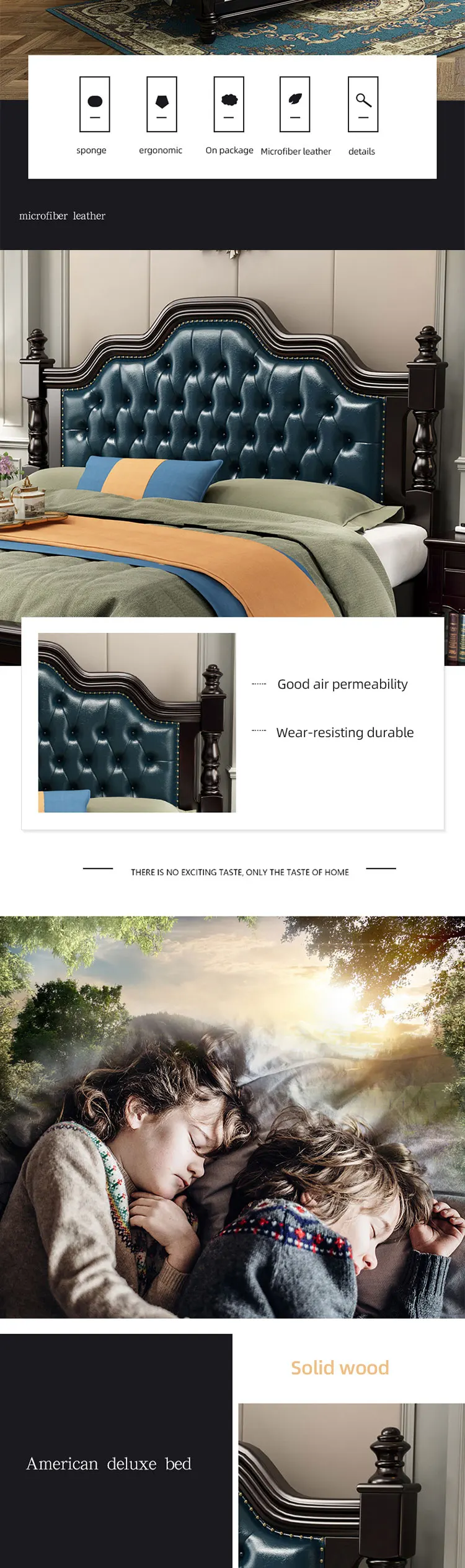 HRZ Bedroom Furniture Multifunctional with Lift Storage Box Leather Backrest Solid Wood Adult Wedding Bed