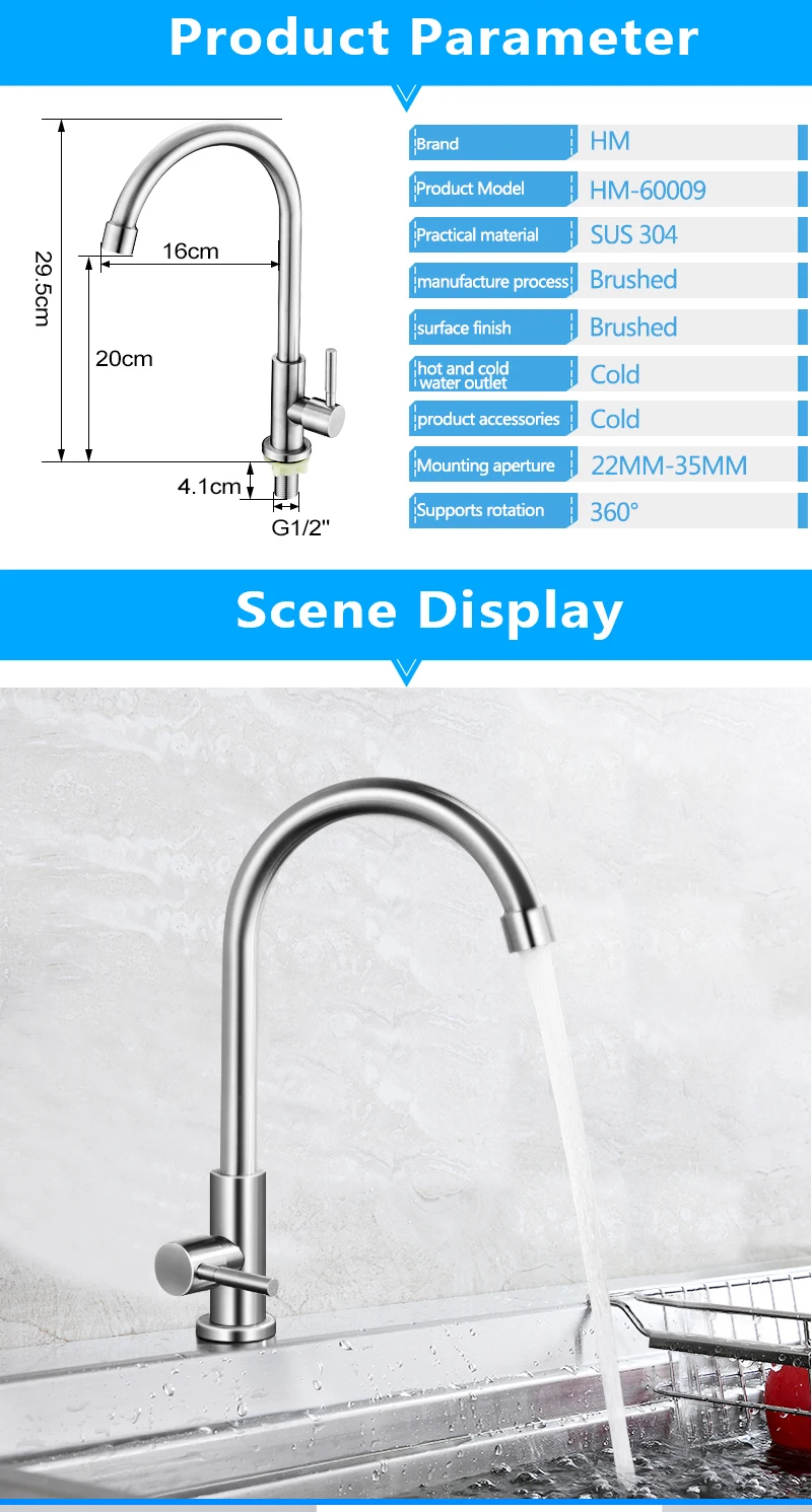2021 newly frap brushed nickel surface 304 stainless steel hot and cold faucet deck mounted health sink kitchen faucet