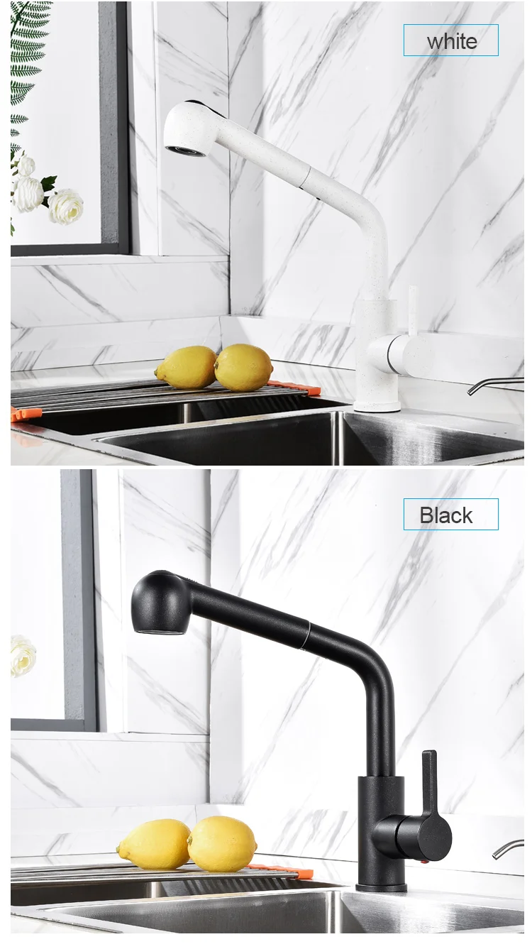 Pull Out Kitchen Faucet Sprayer Chrome white Kitchen Taps Swivel 360 Degree Sink Faucets Mixer Tap