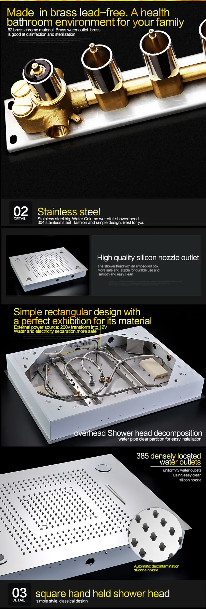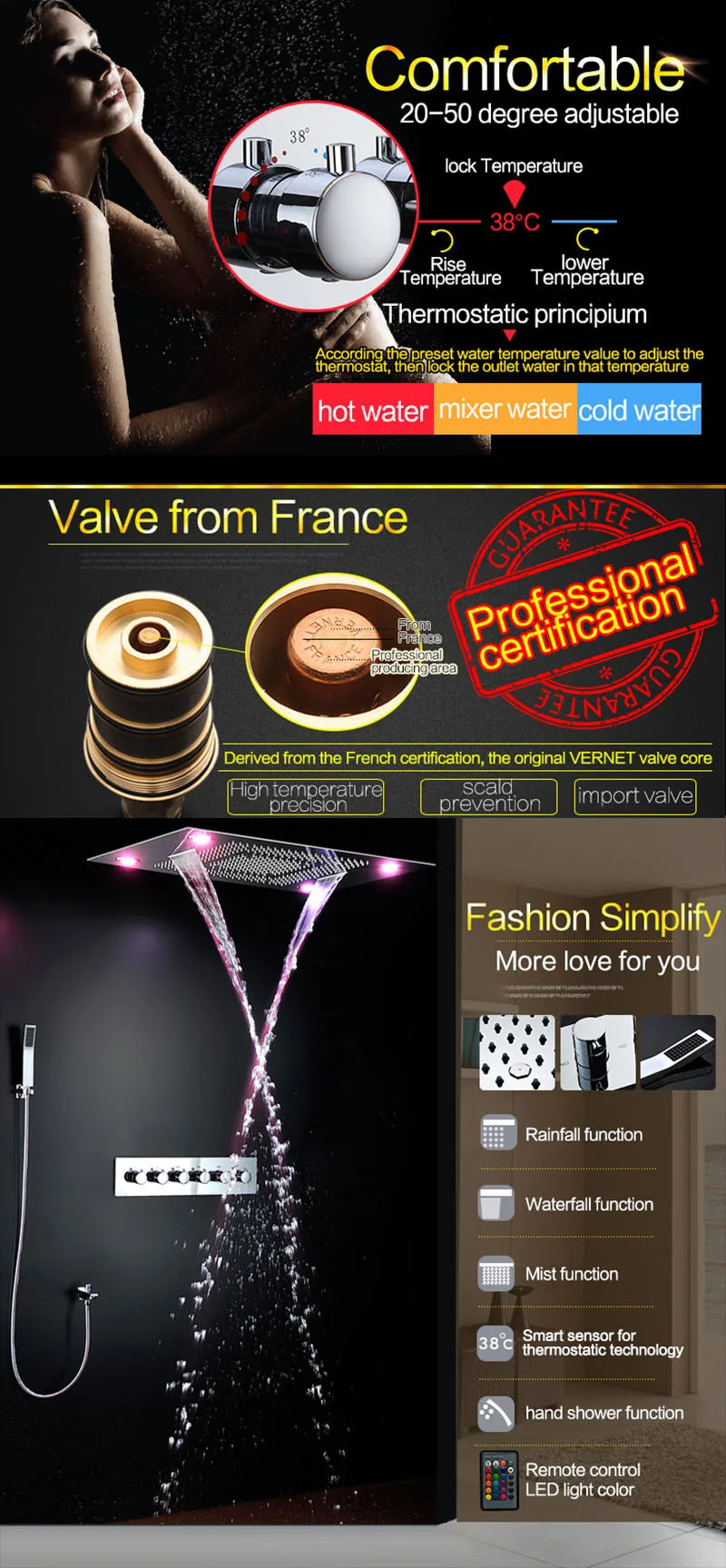Home Bathroom Products,Sinks Bathroom Faucet & Shower Bathtub Faucet &Shower Faucet Kaiping Aoji Sanitary Ware Co., Ltd High Quality Shower System Spa Mist Waterfall Bath Thermostatic Faucets Mist Shower Head Led Recessed Rain Set