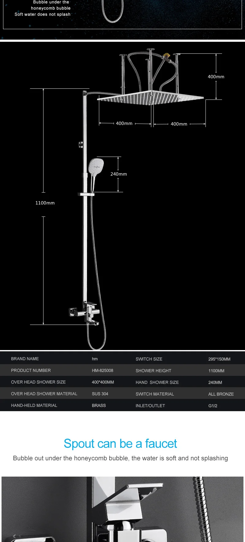 Home Bathroom Products,Sinks Bathroom Faucet & Shower Bathtub Faucet &Shower Faucet Kaiping Aoji Sanitary Ware Co., Ltd 20 inch Thermostatique Wall Conseal Big Overhead Rain Misty SPA Massage Shower Head Mixer With Hand Shower 304 Faucet Sets