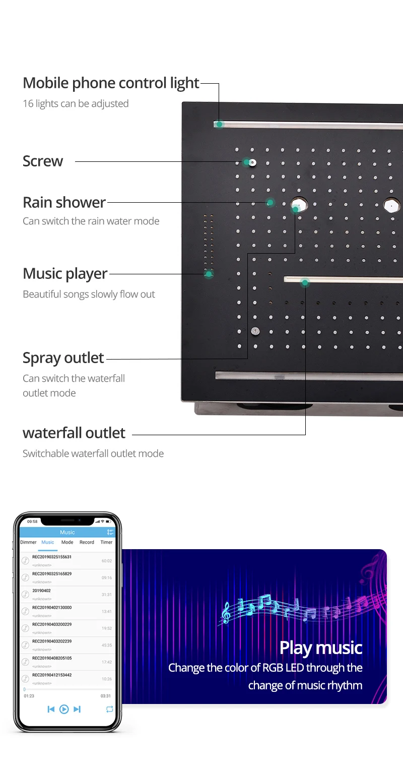 Home Bathroom Products,Sinks Bathroom Faucet & Shower Bathtub Faucet &Shower Faucet Kaiping Aoji Sanitary Ware Co., Ltd New design hot and cold water mixer music shower set spa shower system