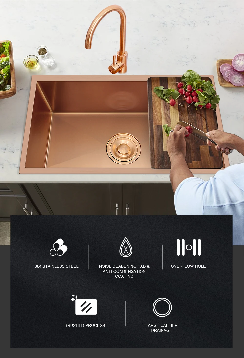 Stainless Steel Kitchen Wash Basin Single Bowl Nano Finish Copper Kitchen Sinks
