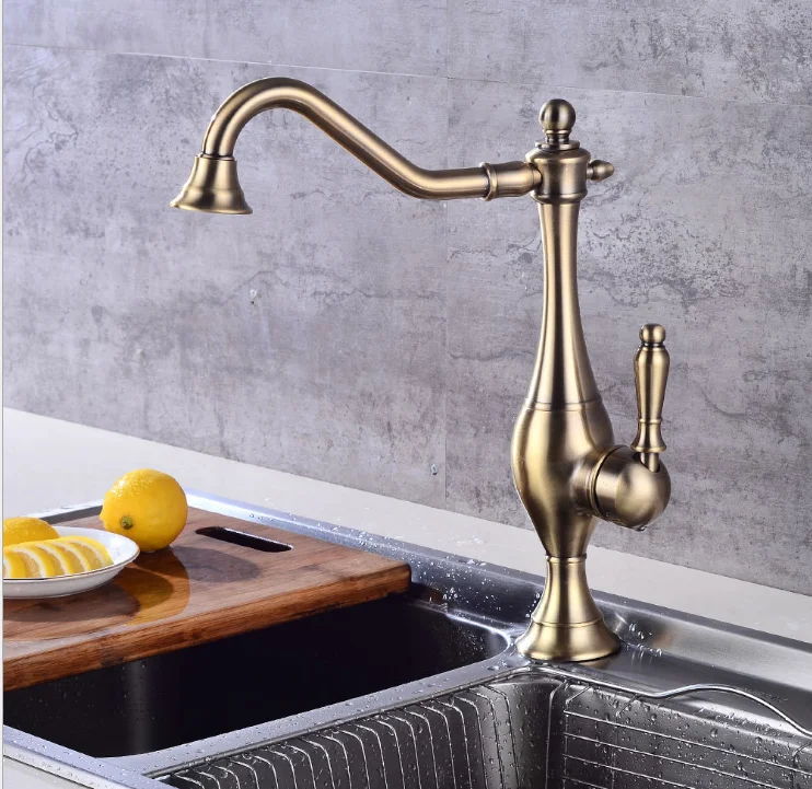 Single Handle Gold Brass Basin Kitchen Faucet