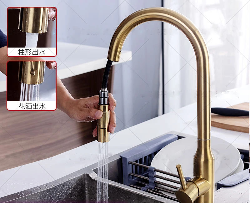 Brushed Gold Pull Down Kitchen Faucet tap kitchen sink faucet with pull down