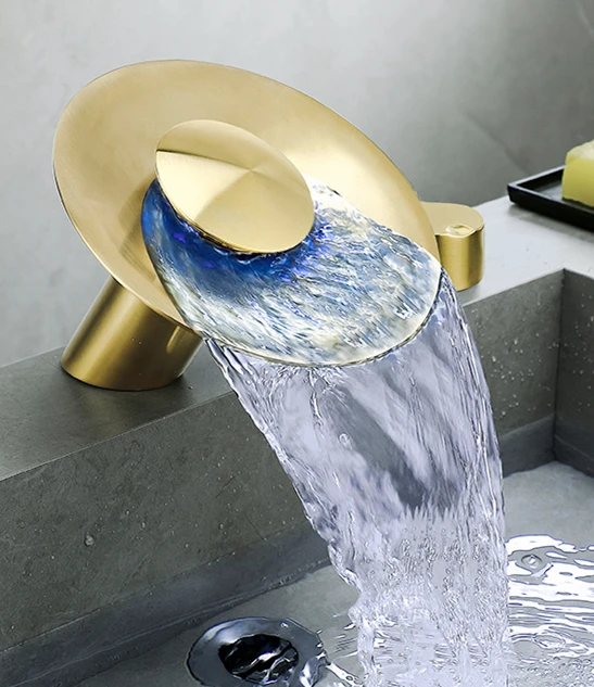 modern waterfall basin faucet Brushed gold basin faucets commercial Basin Faucet