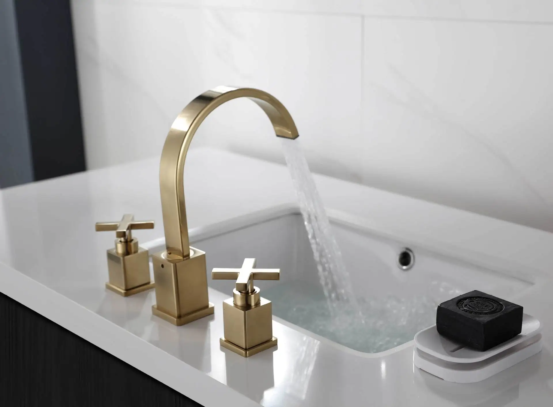 Home Bathroom Products,Sinks Bathroom Faucet & Shower Basin Faucet Hongdec Sanitary Ware Co., Ltd. Deck Mount Bathroom Sink Faucets Two Handle 3 Hole Basin Faucet
