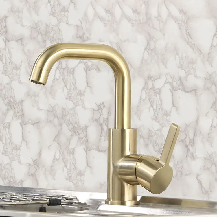Brushed gold faucet Contemporary bathroom brass basin faucet single handle water tap