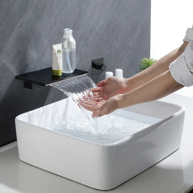 Wall Mount Brushed Gold Faucet Waterfall Faucet Bathroom Faucet Mixer Tap