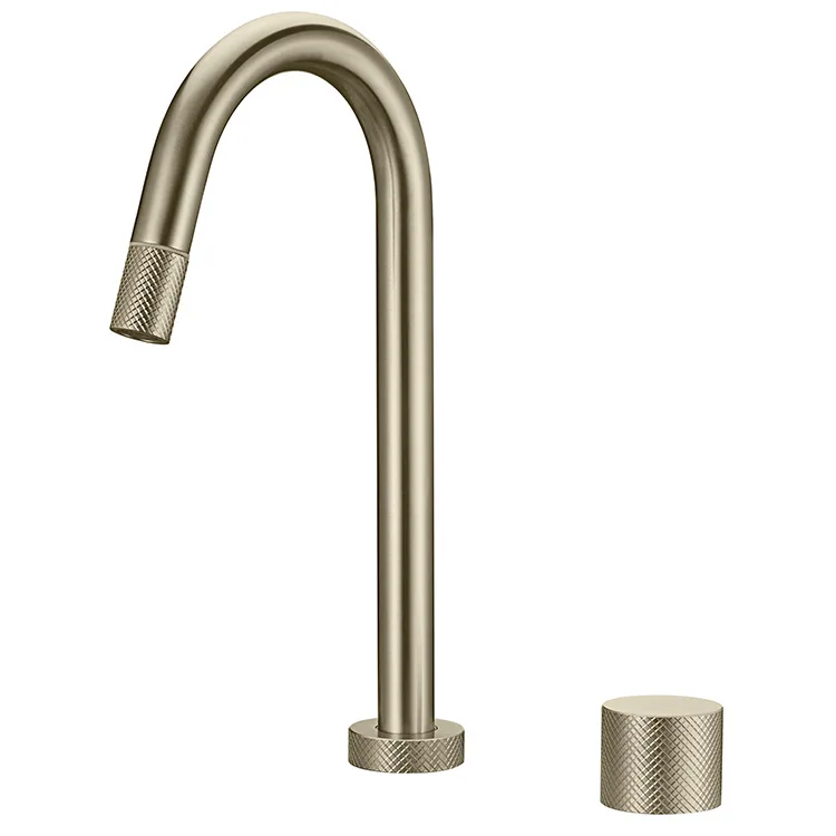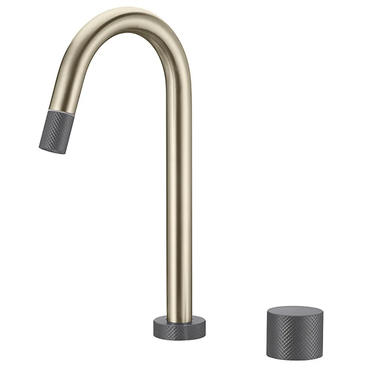 Home Bathroom Products,Sinks Bathroom Faucet & Shower Basin Faucet Hongdec Sanitary Ware Co., Ltd. Deck Mount Bathroom Water Tap Brush Gold Faucet Mixer With Knurling Design