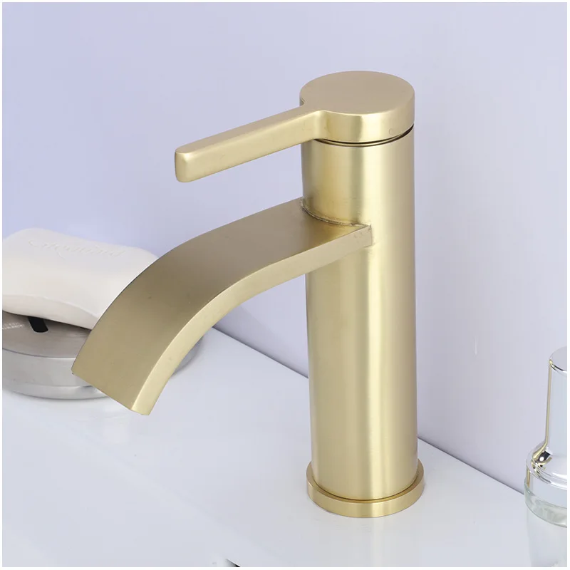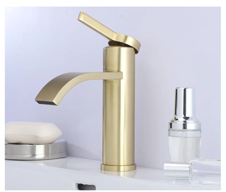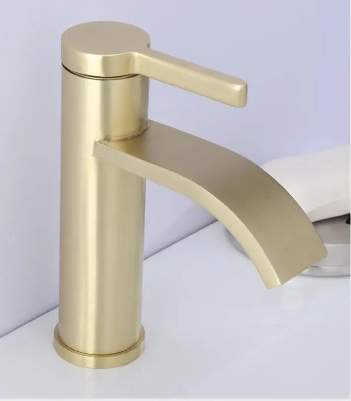 Home Bathroom Products,Sinks Bathroom Faucet & Shower Basin Faucet Hongdec Sanitary Ware Co., Ltd. Brushed gold Deck Mount Basin Mixer Tap single Handle Lavatory Faucet